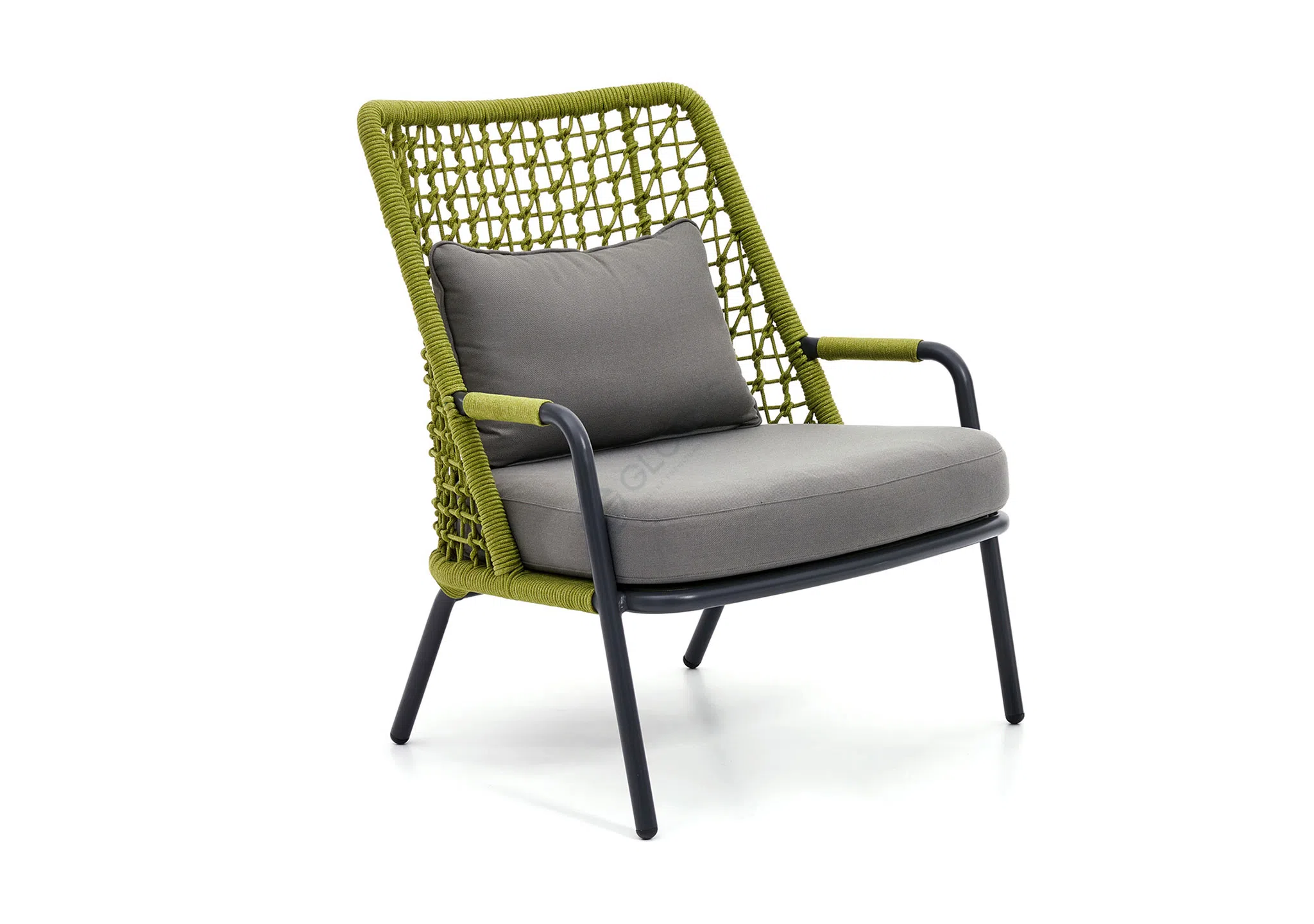 Основой служит прочный каркас из алюминия, гарантирующий устойчивость и долговечность изделия в любых погодных условиях. Спинка дивана выполнена из искусно сплетенной веревки, добавляющей легкость и уникальную текстуру его облику. Сиденье и подушки, обтянутые премиальным текстилем, дарят непревзойденное ощущение комфорта.