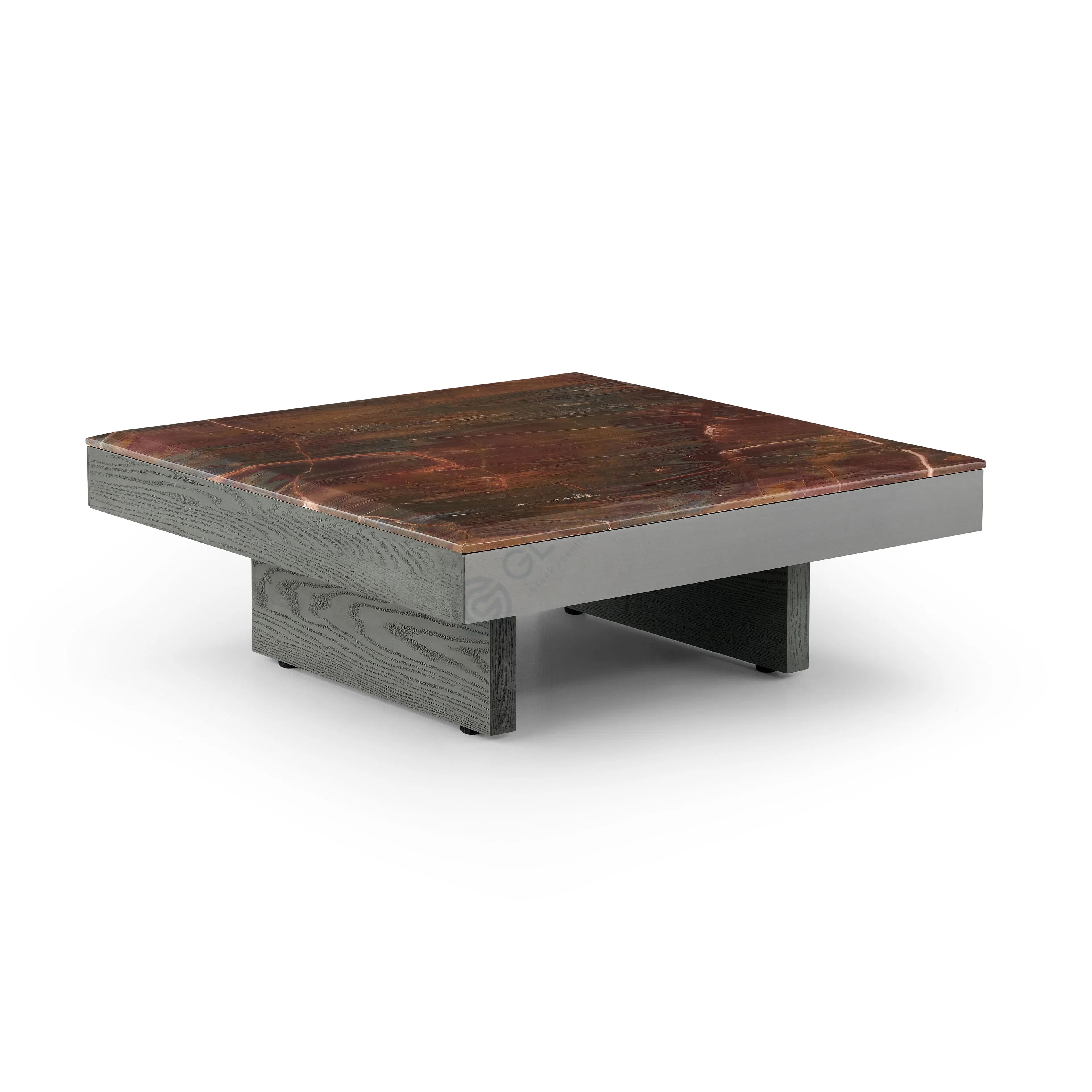 Журнальный столик effortlessly сочетает современную эстетику с исключительными материалами. Его столешница из натурального мрамора привлекает внимание своим уникальным рисунком и теплыми оттенками, создающими ощущение дорогого, изысканного пространства.