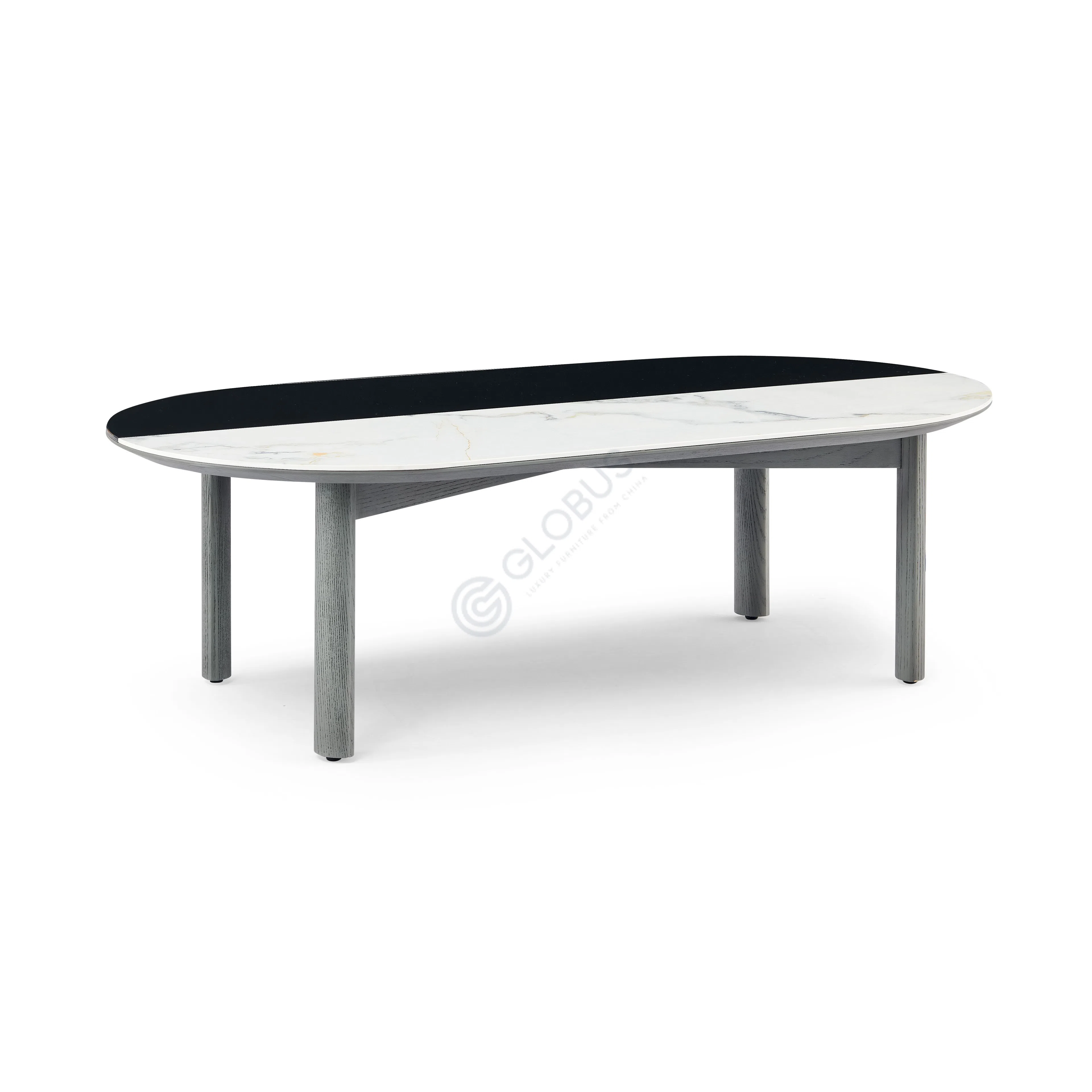 Столешница выполнена из спеченного камня и аккуратно сочетается с текстурой натурального дерева, что привносит в образ изделия баланс природной фактуры и инновационных решений. Мягкий рисунок шпона дополняет визуальную теплоту, а основа из МДФ и фанеры обеспечивает надежность конструкции и легкость в уходе.