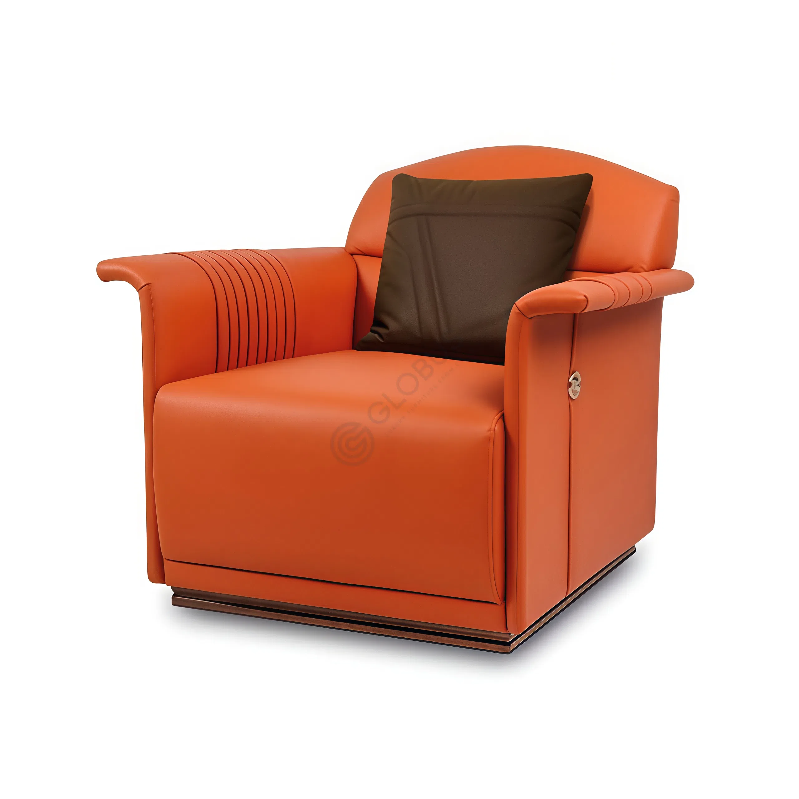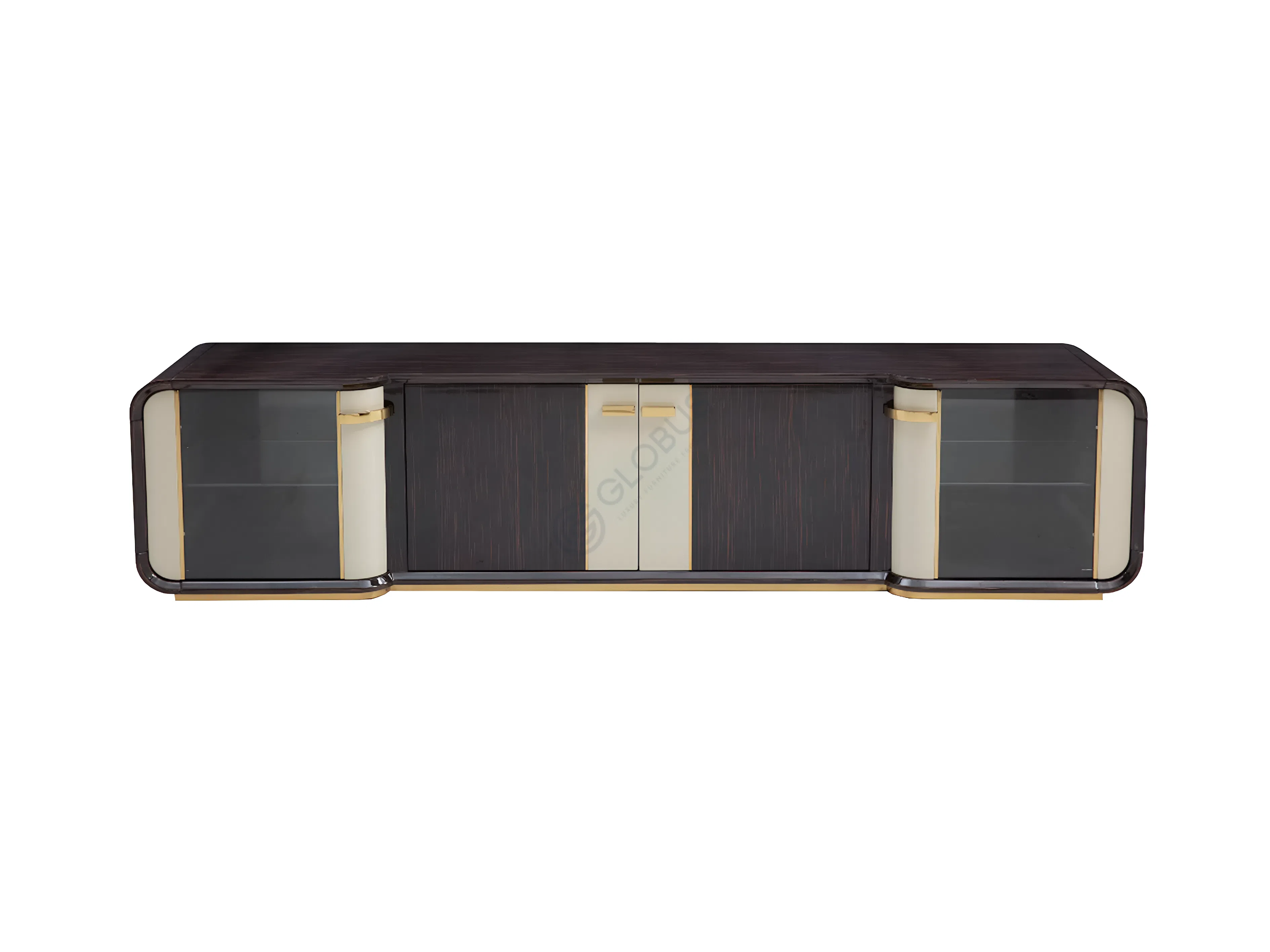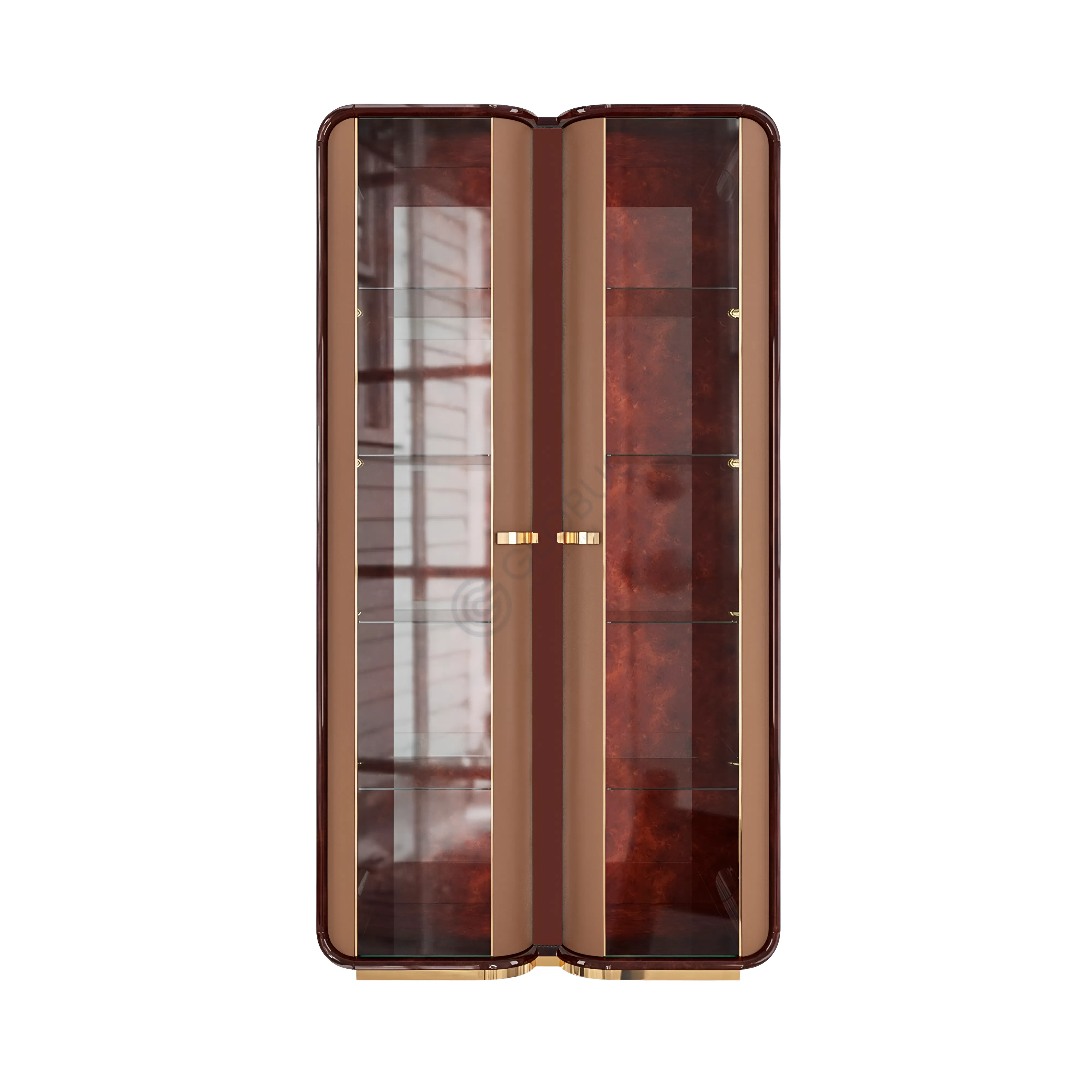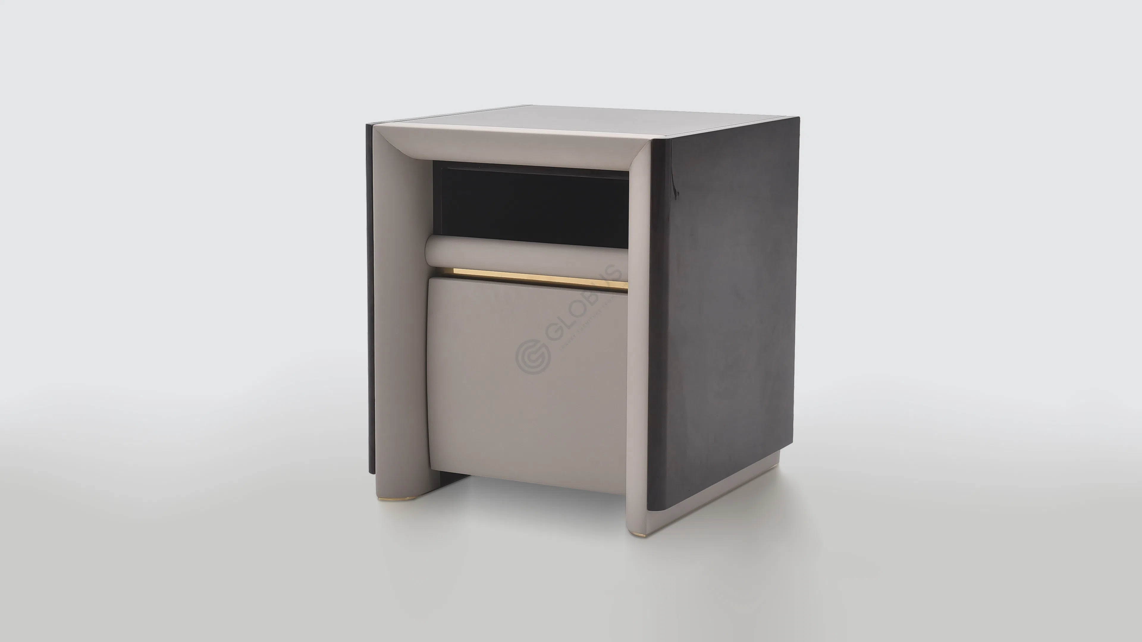 Конструкция столика базируется на прочной фанере, облицованной высококачественным шпоном, что придает изделию богатый древесный оттенок и природную текстуру. Эта основа дополняется искусно интегрированными элементами из нержавеющей стали, которые подчеркивают геометрию и добавляют деликатный блеск. Внутренние поверхности и изогнутая центральная панель обтянуты нежной экокожей на микрофибре, создавая приятную на ощупь поверхность и визуальный контраст.