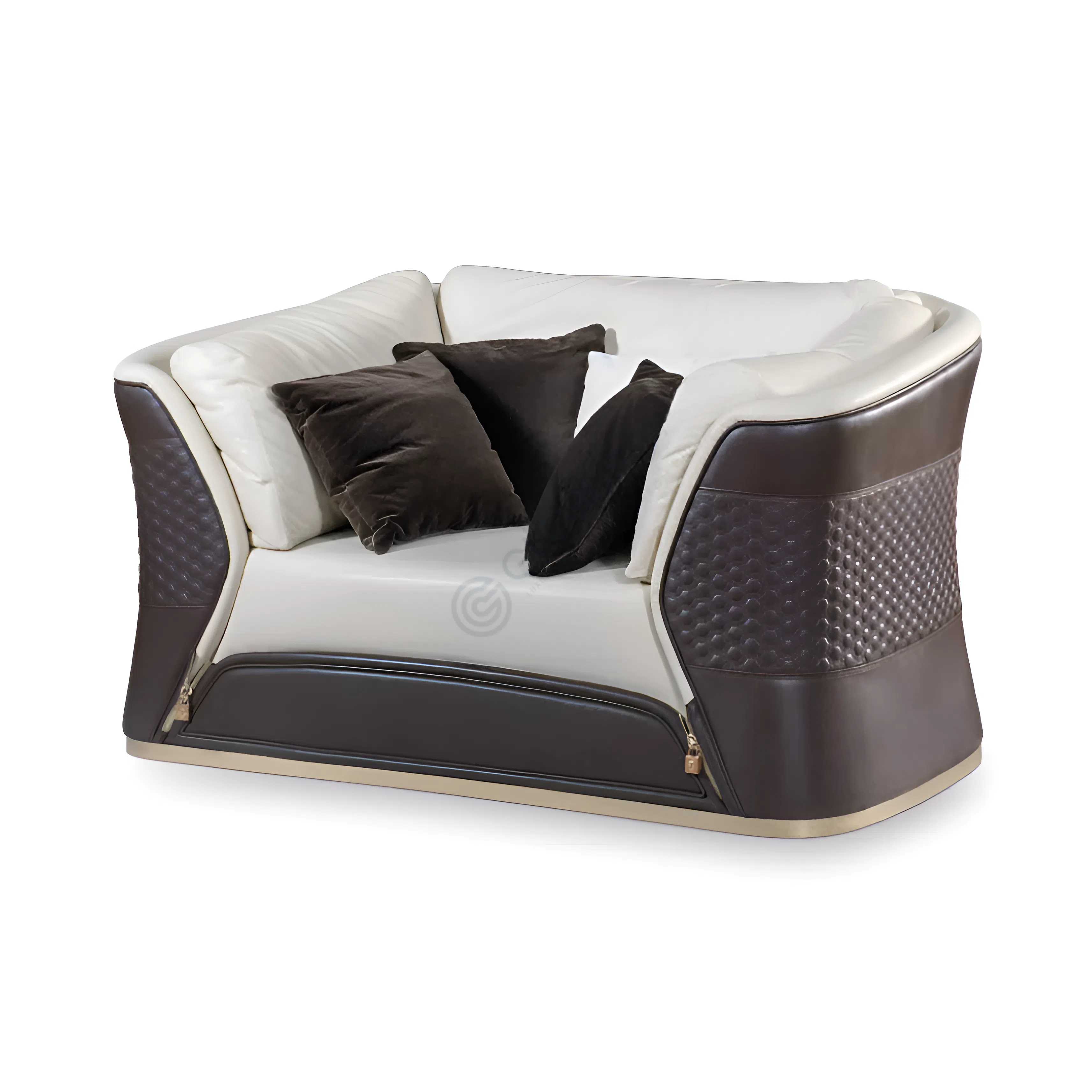 Этот предмет мебели представляет собой изысканный винный шкаф, созданный для ценителей прекрасного. Его дизайн воплощает современную элегантность, гармонично сочетая различные фактуры и материалы премиум-класса. Внешняя отделка из нежнейшей кожи Наппа придает корпусу тактильную привлекательность и роскошный вид, дополненный деликатной строчкой, подчеркивающей мастерство исполнения.