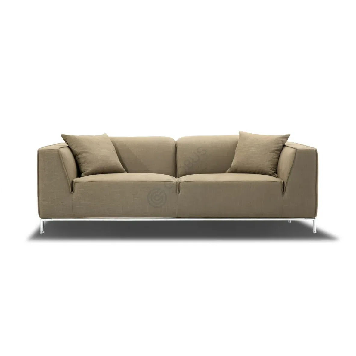 Основа этого предмета мебели выполнена из прочного натурального дерева, обеспечивая надежность и долговечность конструкции. Мягкость сидений и подушек достигается благодаря использованию нежнейшего пуха, который дарит ощущение исключительной уютности. Обивка из качественного текстиля приятна на ощупь и подчеркивает изысканность изделия, а тонкие ножки из нержавеющей стали придают дизайну легкости и завершенности.