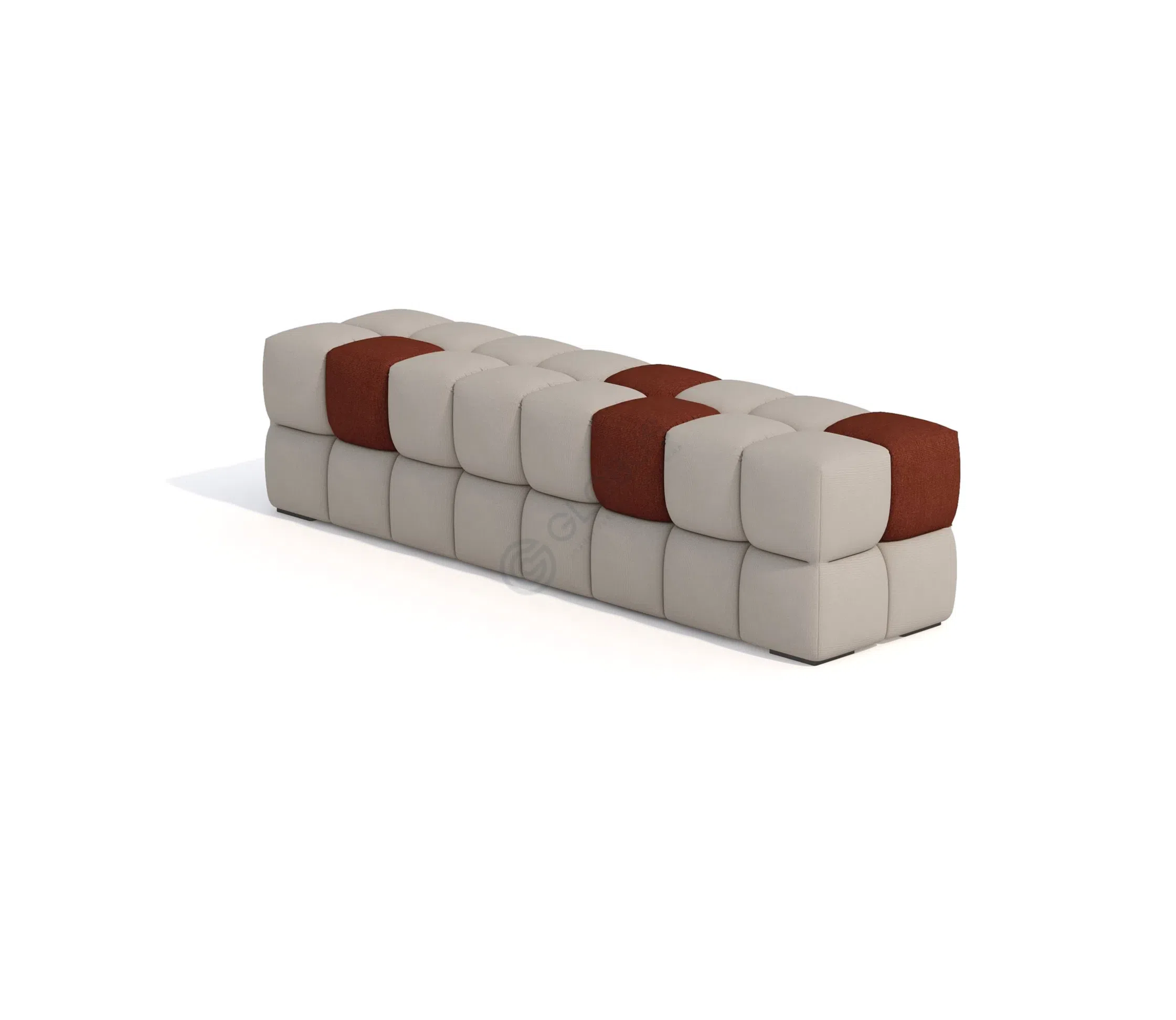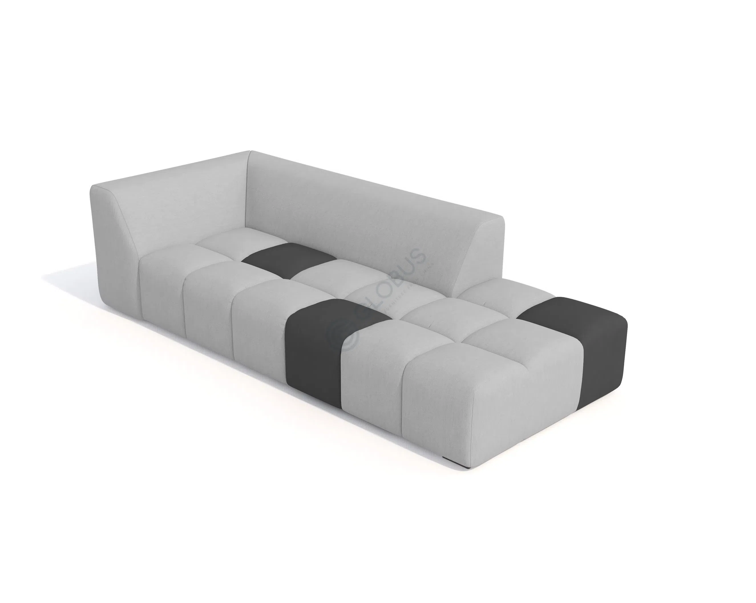 Обивка из премиального текстиля придает сиденью не только привлекательный вид, но и приятные тактильные ощущения. Выразительные секции, включая контрастные центральные модули, добавляют визуальной динамики и подчеркивают индивидуальность формы. Широкие подлокотники и лаконичная спинка завершают его изысканный образ.