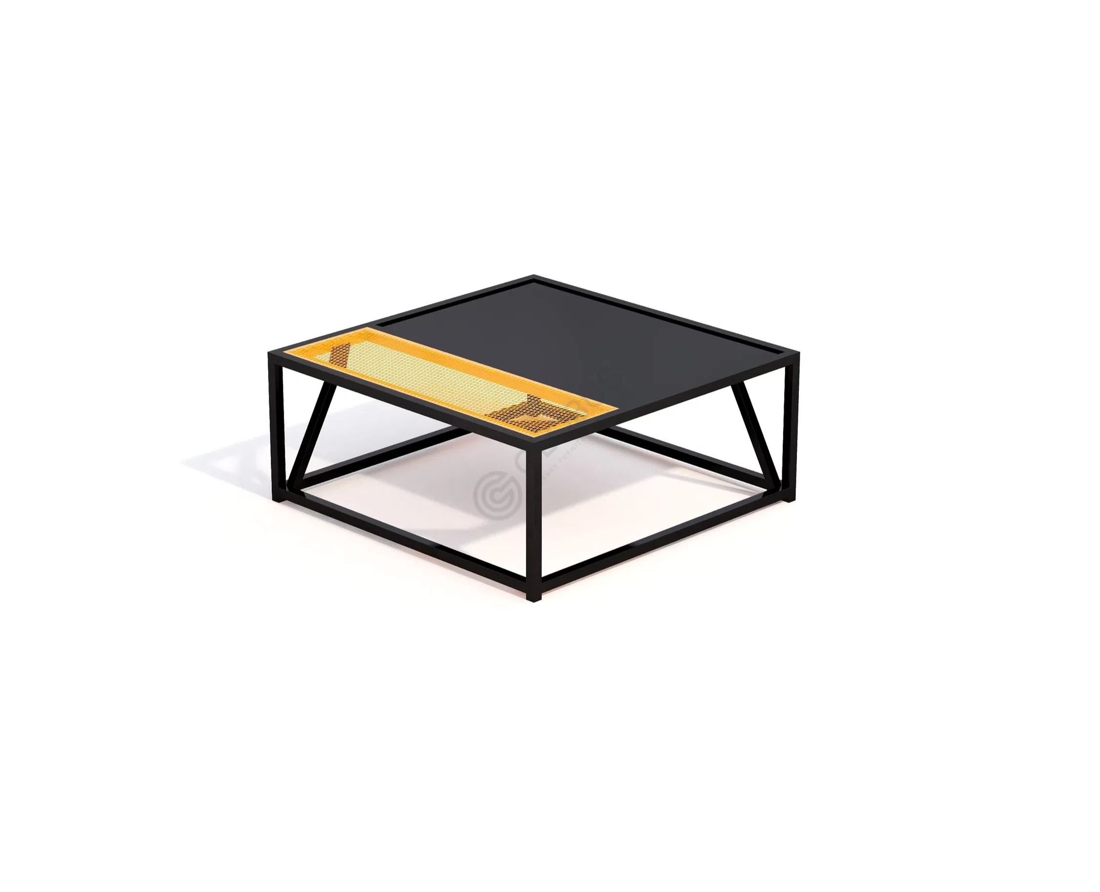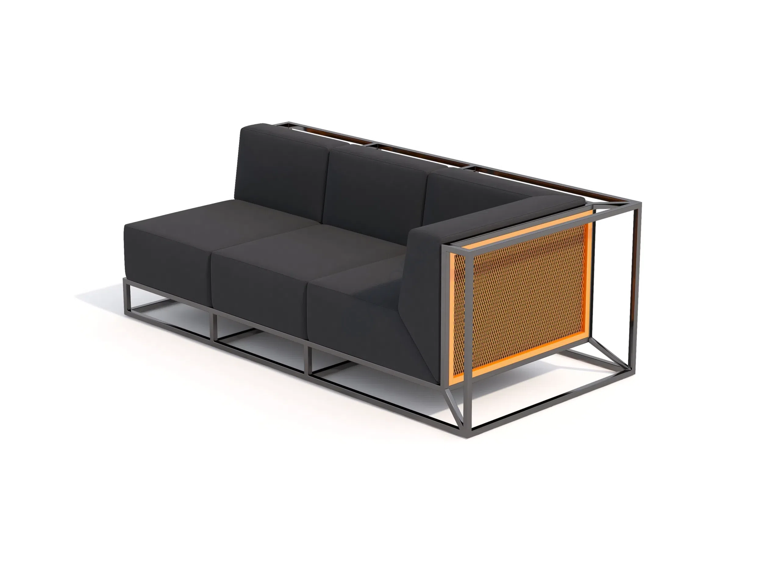 Основа конструкции — прочный каркас из алюминия, который придает изделию индустриальную эстетику, соответствующую духу лофта. Комфортные сиденья и спинка выполнены из качественного текстиля, обеспечивающего уют. Боковые элементы добавляют визуальный акцент благодаря перфорированной вставке.