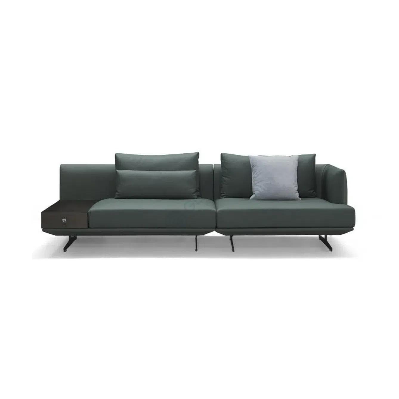 Это изделие представляет собой воплощение современного комфорта и элегантности, созданное для центрального места в изысканной гостиной. Его удлиненный силуэт и плавные изгибы формируют пространство для отдыха, приглашая погрузиться в атмосферу полного расслабления.