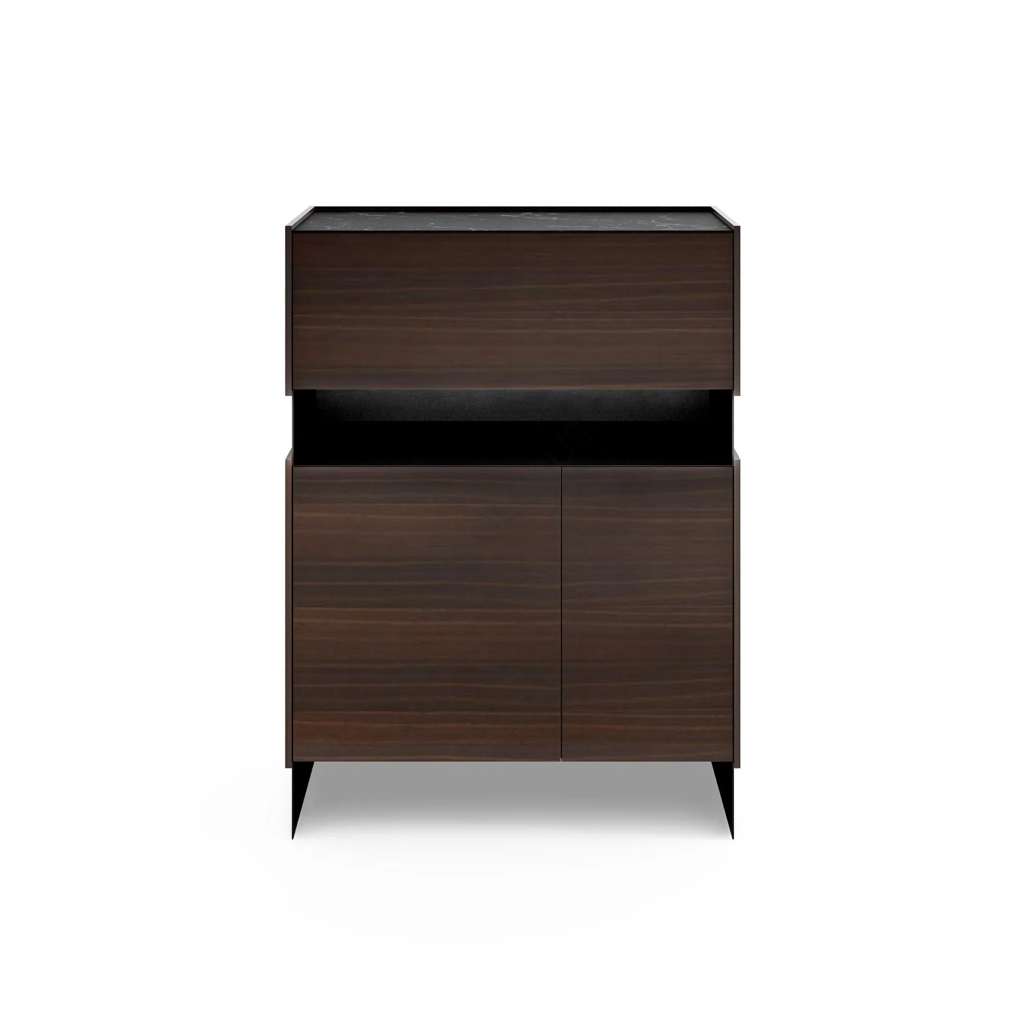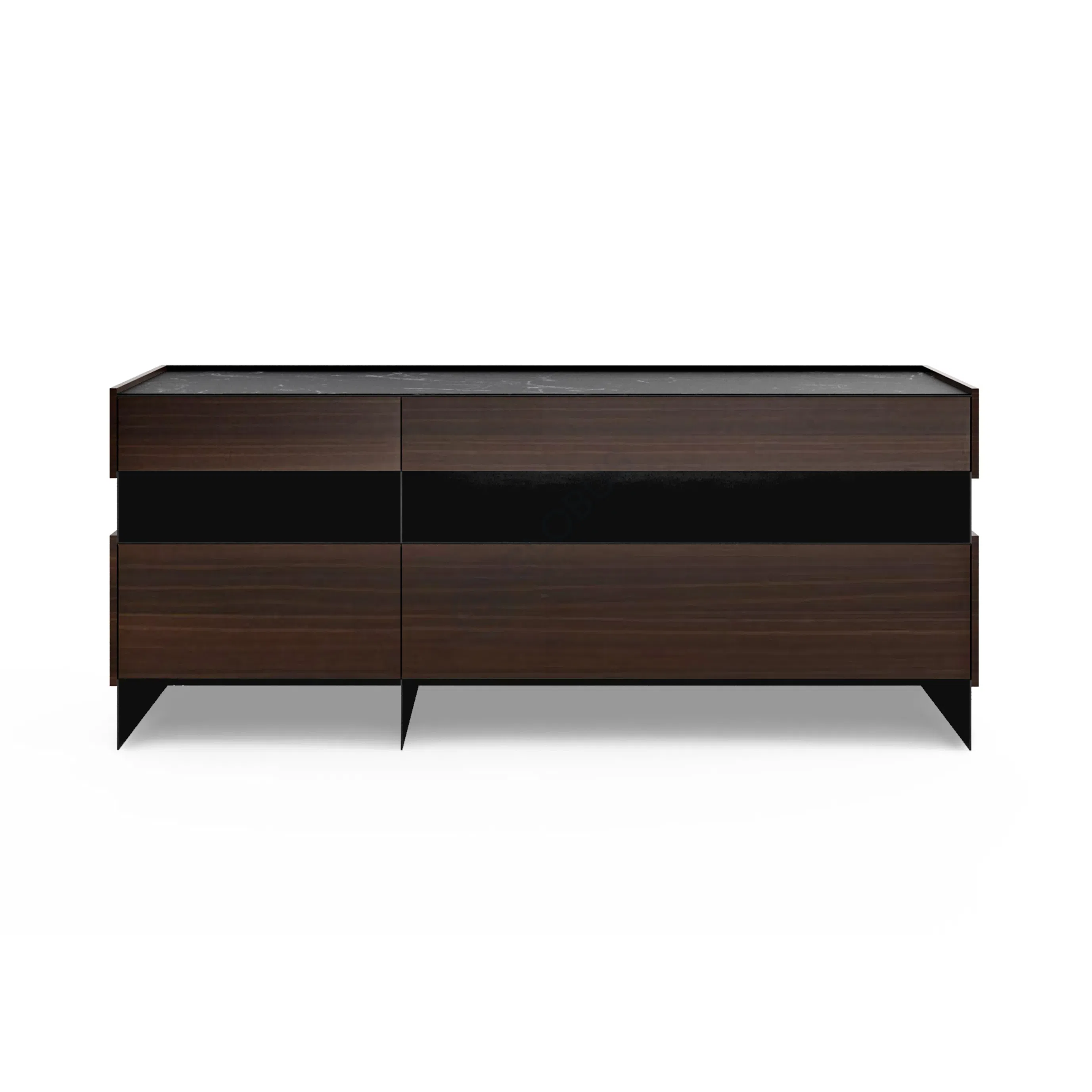 Этот изысканный телевизионный столик является воплощением элегантности и утонченности в интерьере. Изготовленный из высококачественных материалов, он сочетает в себе долговечность и стиль. Основа из углеродистой стали обеспечивает превосходную устойчивость и подчеркивает профессиональное мастерство изготовления. Поверхность, отделанная шпоном, придает ему натуральный и теплый внешний вид, в то время как детали из спеченного камня добавляют нотки роскоши и эксклюзивности. Конструкция из ХДФ гарантирует надежность и долговечность использования.