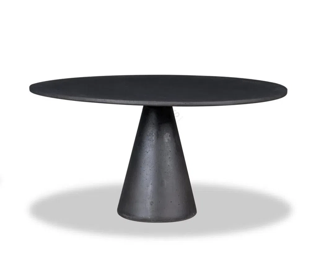 Геометрия конуса в основании создает устойчивую опору, а круглая столешница позволяет удобно разместить любимые аксессуары или чашку кофе. Спокойная цветовая гамма легко вписывается в разную палитру интерьера, сохраняя ощущение уюта и сдержанной роскоши.