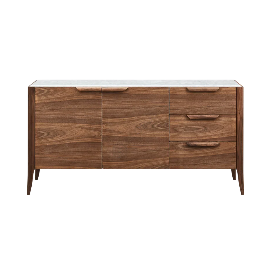 Нейтральная палитра дерева и холодный оттенок камня легко впишутся в обстановку гостиной или спальни, добавив интерьеру спокойного шарма и практичности.
