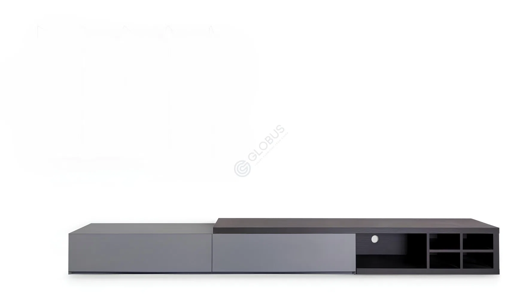 Этот стеллаж вносит изысканную структуру в современное пространство гостиной. Его дизайн представляет собой игру вертикальных и горизонтальных линий, создавая выразительный визуальный ритм, который великолепно организует объем.