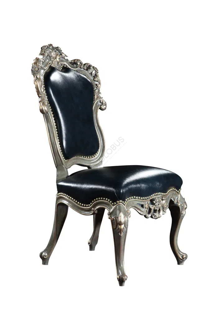 Особое внимание уделено мастерству изготовления. Каркас создан из массива натурального дерева, вручную украшенного тонкой резьбой, что придает ему уникальность. Сиденье обито высококачественным текстилем с ненавязчивым, но выразительным узором, обеспечивающим исключительный комфорт и эстетическое наслаждение.