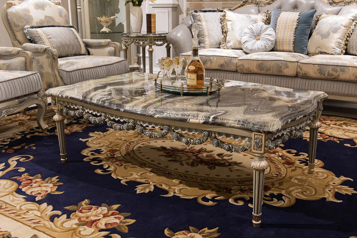 Изготовленный из отборного натурального дерева, столик отличается безупречным качеством. Поверхность столешницы может имитировать фактуру благородного мрамора, придавая изделию особый шик. Особое внимание уделено деталям: ножки изящно изогнуты и украшены тонкой резьбой, а каждый элемент декора выполнен с исключительным мастерством, подчеркивая высокий статус этой мебели.