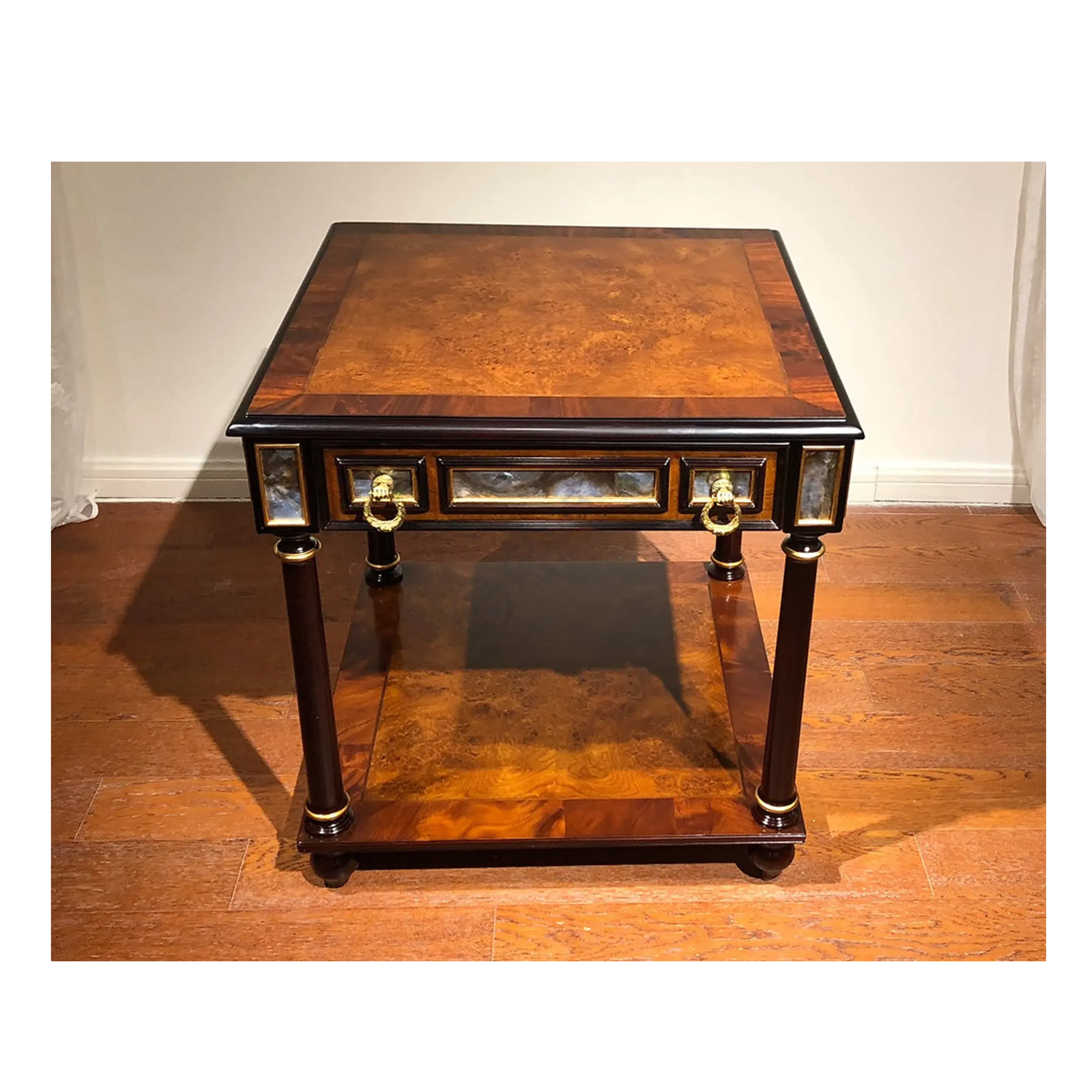 Поверхность обладает деликатной патиной, которая придает ему шарм старины. Искусные декоративные детали украшают фасады ящиков, добавляя ноту позолоченной изысканности. Эти тонкие художественные акценты формируют его неповторимый характер и роскошный облик.