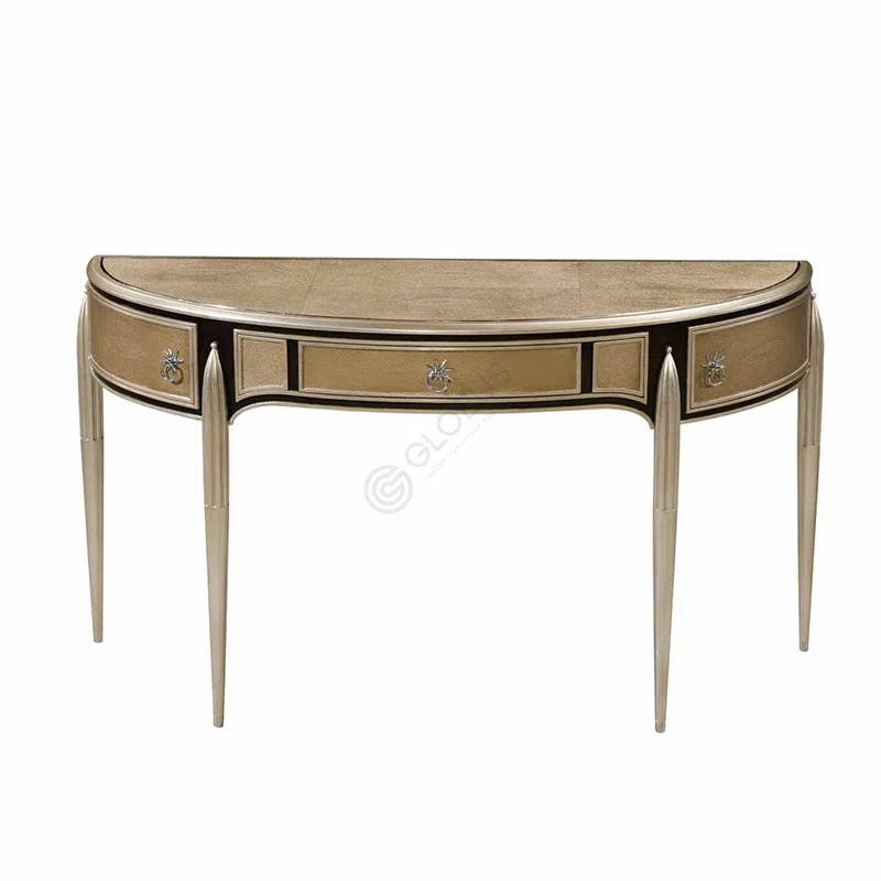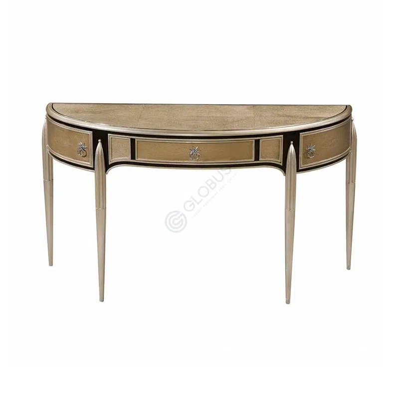 Дизайн объединяет элементы неоклассики и ар-деко. Изогнутые формы корпуса и ножек напоминают о классических традициях, в то время как блестящая металлическая отделка и оригинальные ручки ящиков добавляют нотки гламура и геометрической строгости, свойственные стилю ар-деко. Каждая деталь подчеркивает премиальный статус изделия.