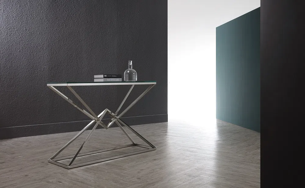 Основание предмета выполнено из высококачественной нержавеющей стали, формируя причудливый геометрический узор. Серебристый блеск металла подчеркивает его изысканные пересекающиеся линии, добавляя интерьеру динамики и современной элегантности.