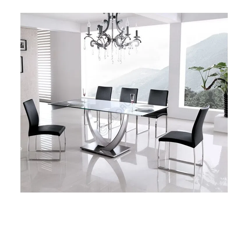 В основе его конструкции — прочная нержавеющая сталь, которая обеспечивает долговечность и устойчивость. Металлический каркас с изящным изгибом придает стулу воздушность и создает эффект парения. Сиденье и спинка обтянуты качественной экокожей глубокого черного оттенка. Материал приятен на ощупь и практичен в уходе, сохраняя свой привлекательный вид на долгие годы.