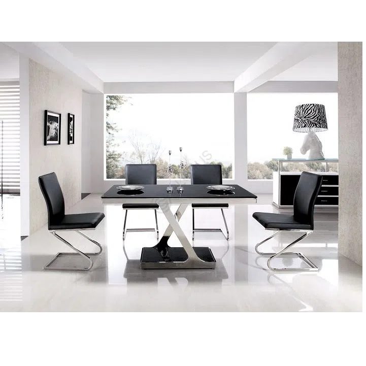 Этот обеденный стул представляет собой воплощение современного дизайна и элегантности. Его силуэт определен изящным изгибом металлического основания, выполненного из прочной нержавеющей стали, которая придает конструкции устойчивость и визуальную легкость. Глянцевая поверхность основания отражает свет, добавляя помещению блеска.