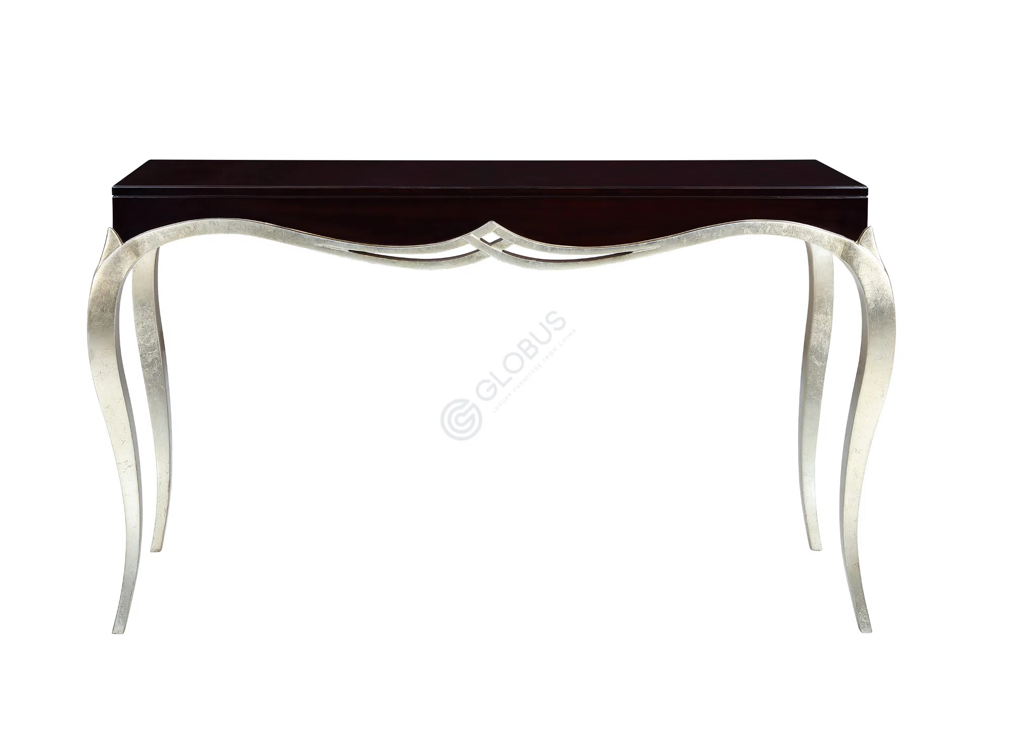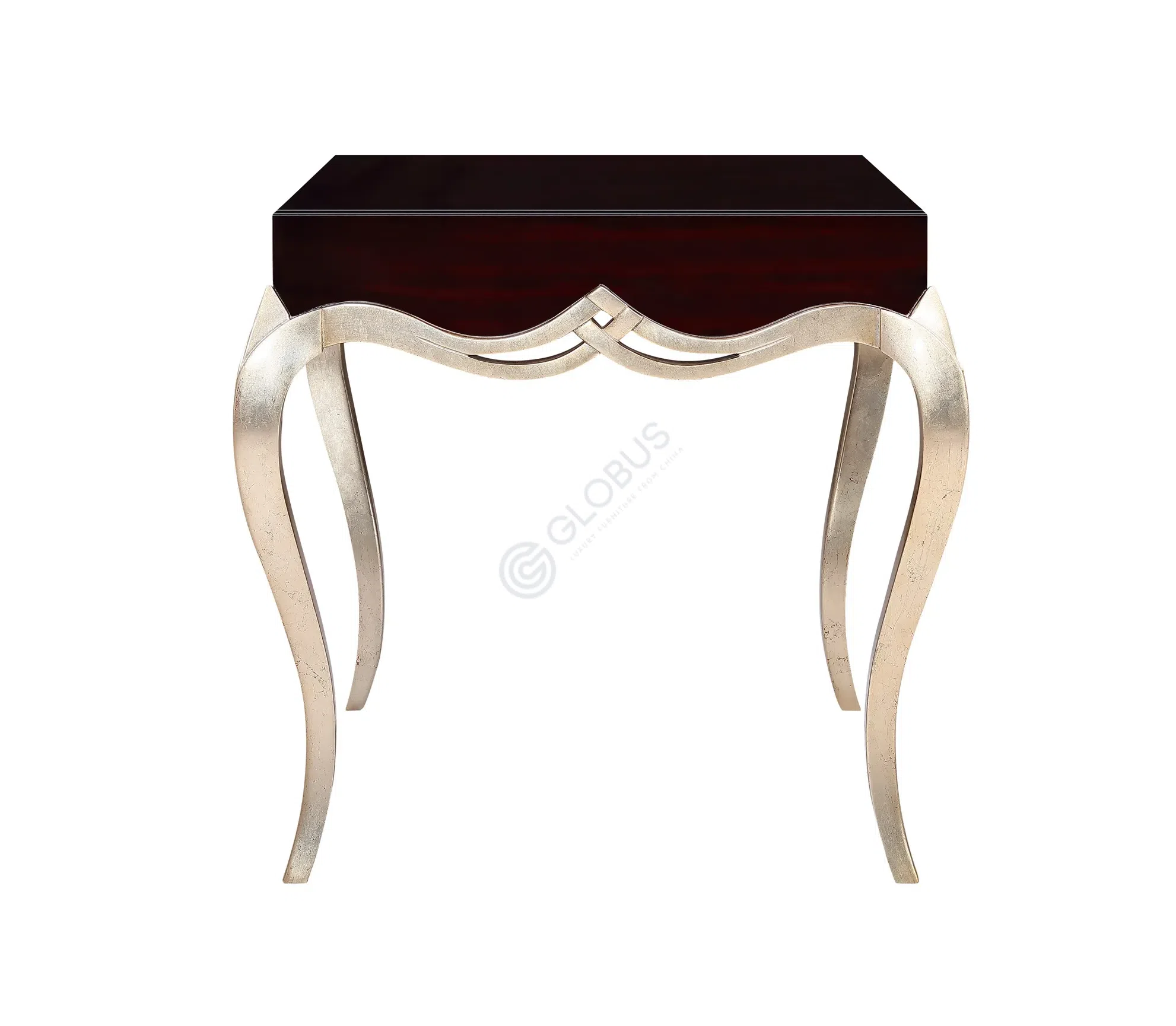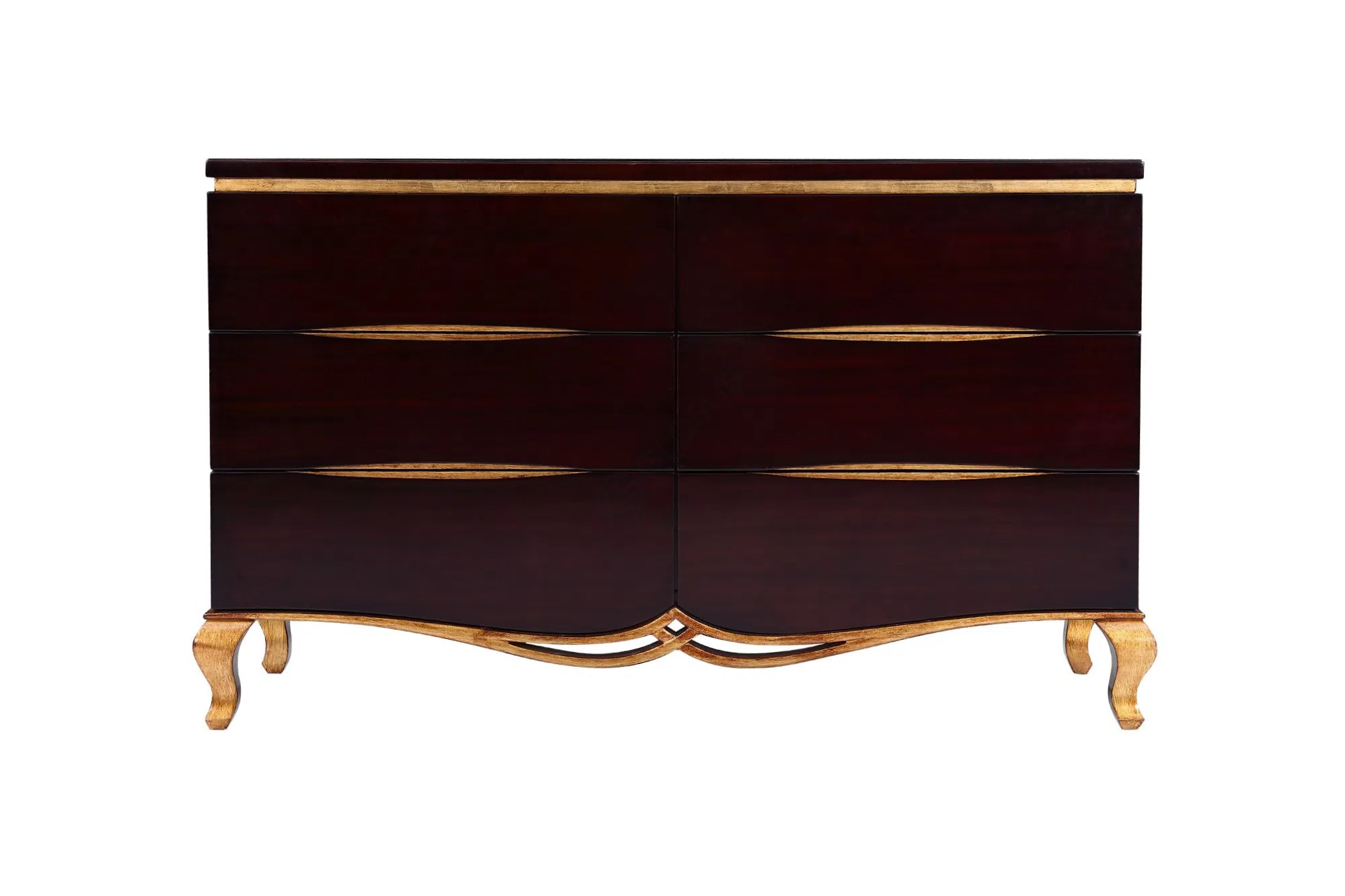 Изготовленный из натурального дерева и фанеры, этот предмет мебели демонстрирует высокое качество исполнения. Фасад завораживает глубоким насыщенным оттенком, украшенным деликатными витиеватыми узорами. Отделка с патиной на декоративных элементах и изящных ножках придает благородный винтажный шарм.