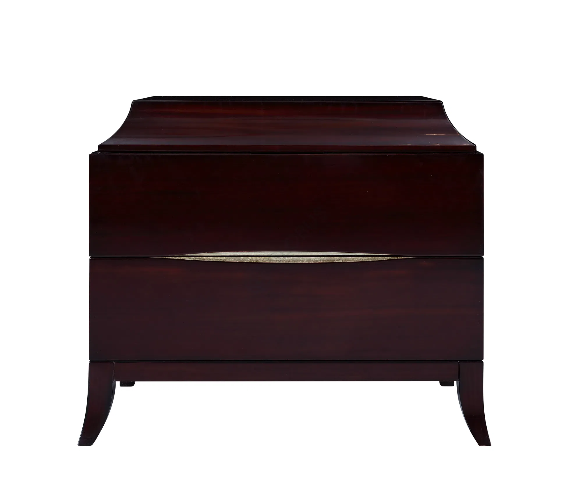 Фасады ящиков выполнены с уникальной деталью: изящные горизонтальные ручки, выделенные отделкой под патину, гармонично вписаны в поверхность, подчеркивая чистоту форм. Этот контраст между гладкой основной поверхностью и фактурной отделкой ручек придает изделию выразительность, не нарушая при этом общей гармонии.