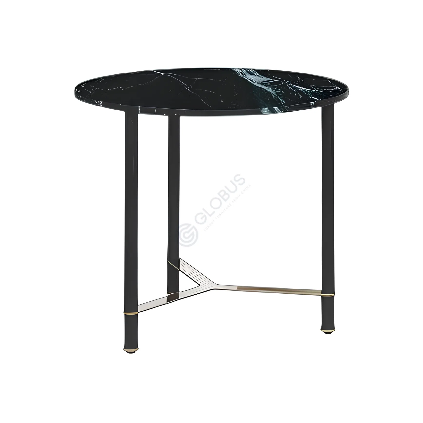 Элегантный журнальный столик представляет собой воплощение утонченного стиля и долговечности. Он сочетает в себе красоту натурального мрамора с прочной основой из нержавеющей стали, заключенной в надежную рамку из ДВП. Мраморная столешница богата уникальными узорами, что придает изысканность интерьеру. Устойчивые металлические ножки, крестообразно соединенные в нижней части, выделяются подчеркнутой линейностью и благородным оттенком, создавая ощущение стабильности и изысканной эстетики.