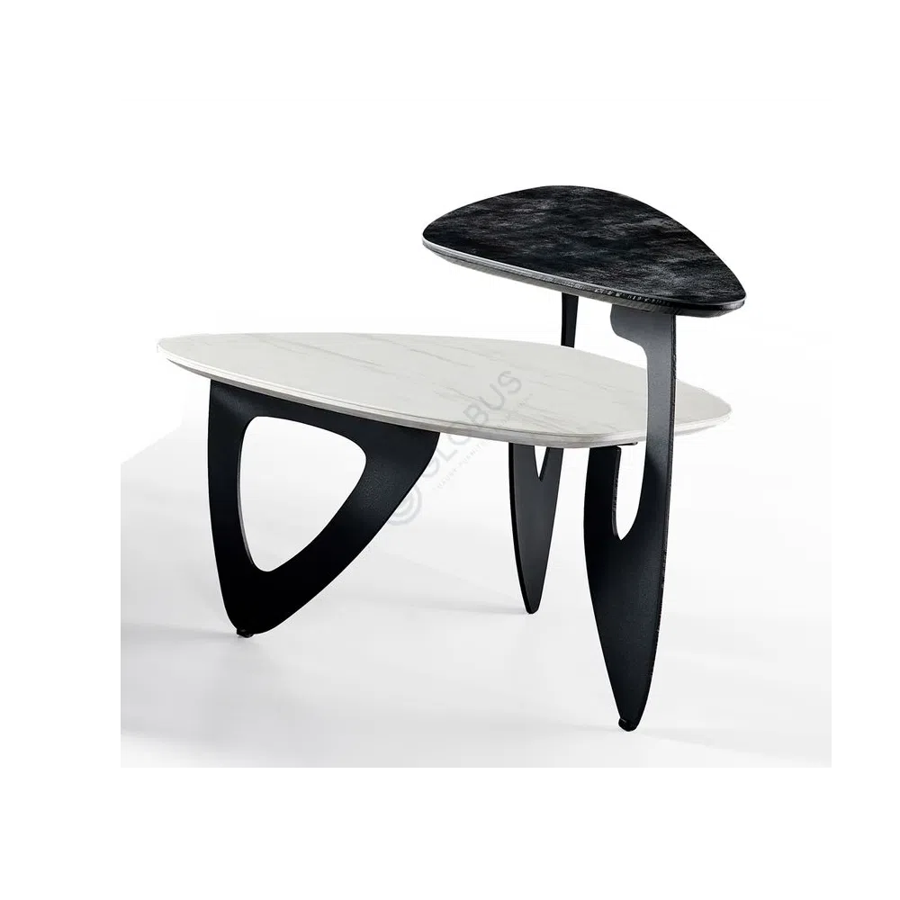Журнальный столик гармонично сочетает в себе изысканный дизайн и практичность. Изготовленный из спеченного камня, металла и МДФ, он представляет собой идеальную деталь современного интерьера. Металлические элементы придают конструкции надежность и устойчивость, а использование спеченного камня добавляет изысканности общей композиции.
