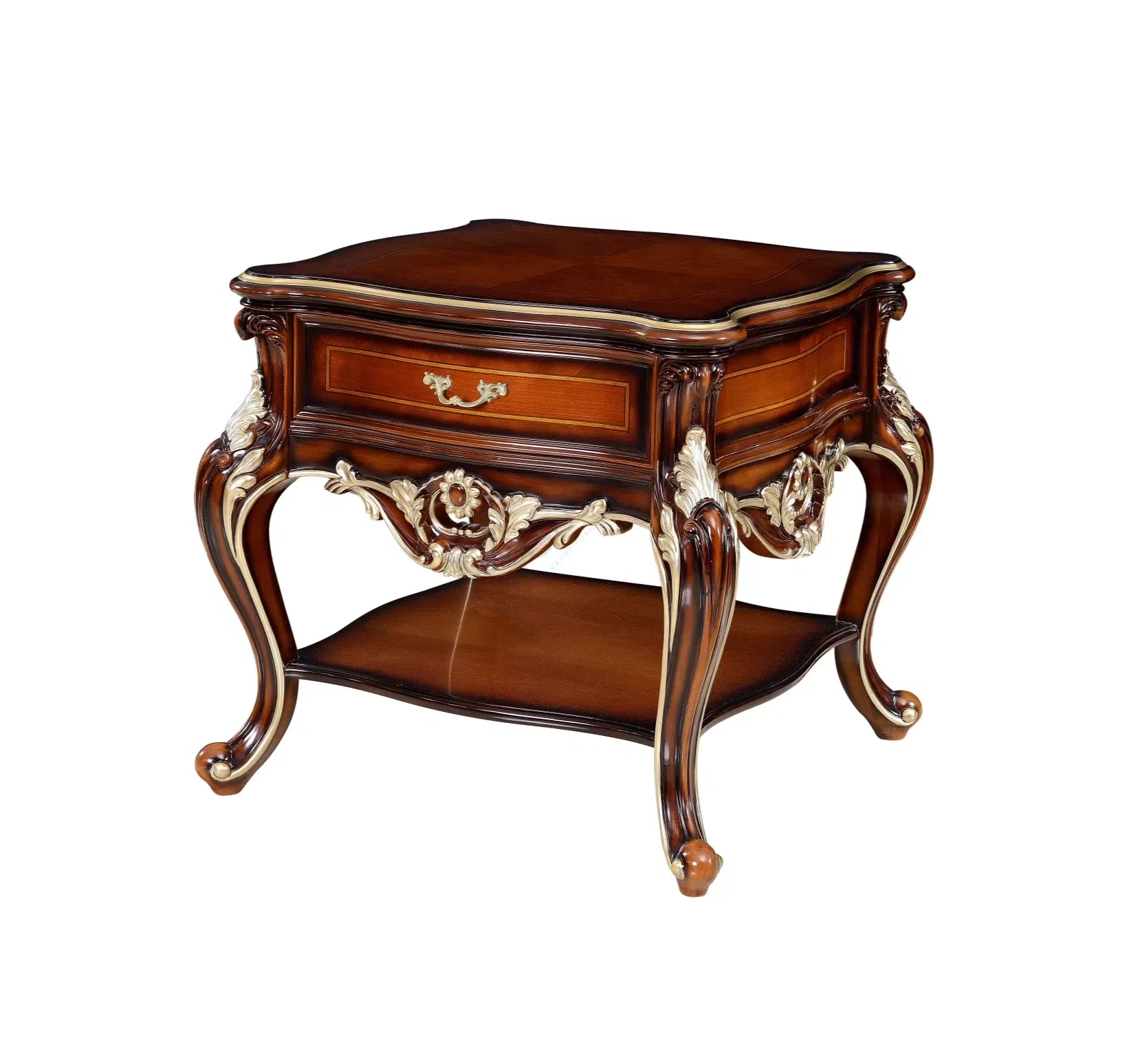 Помимо своей очевидной красоты, столик обладает практичностью благодаря встроенным выдвижным ящикам. Они предоставляют удобное место для хранения мелочей, сохраняя порядок на столешнице. Изящные ножки завершают образ, добавляя легкости классическому дизайну. Этот столик – не просто мебель, а произведение искусства, способное преобразить обычную гостиную в роскошный салон.