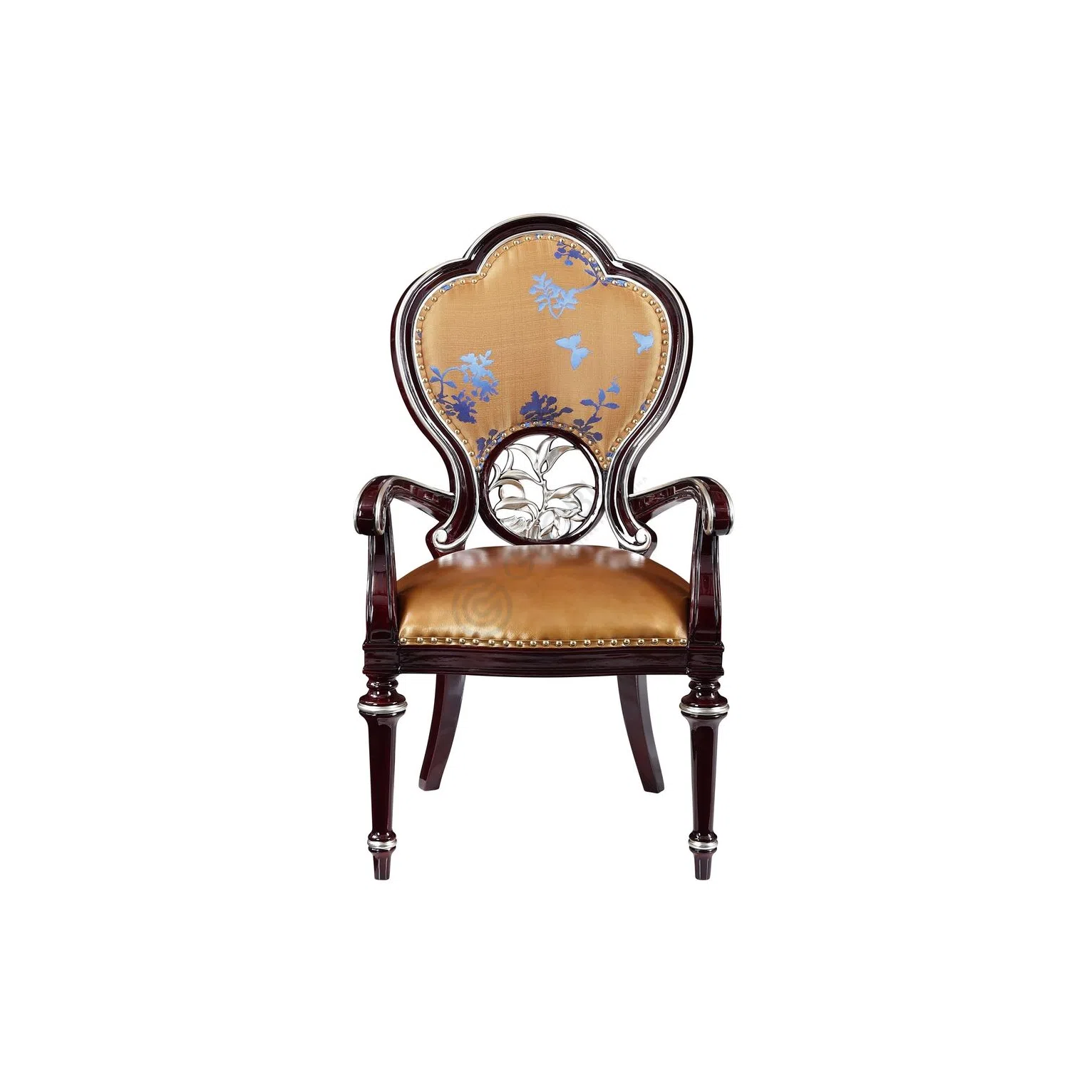 Элегантный кухонный стул в европейском стиле, изготовленный из натурального дерева цвета махагон и обтянутый мягким текстилем в оттенках фиолетового и бежевого, идеально подойдет для столовой или кухни. Надежная конструкция и удобное сиденье обеспечивают комфорт при каждом использовании. Этот изящный стул станет отличным дополнением к вашему интерьеру и придаст ему шика и утонченности.