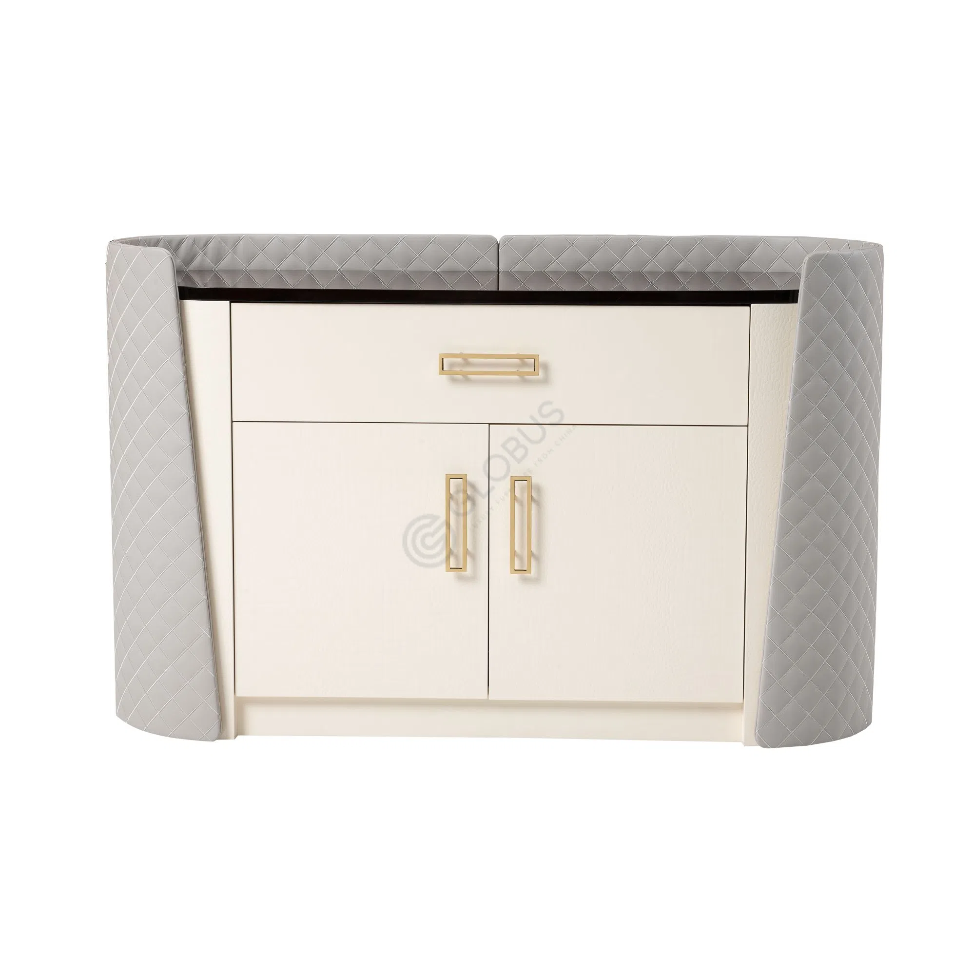 Прикроватная тумба представляет собой стильную и функциональную добавку к современной спальне. Ее изысканный дизайн и использование высококачественных материалов, таких как экокожа на микрофибре, натуральное дерево и металл, создают ощущение элегантности и роскоши.