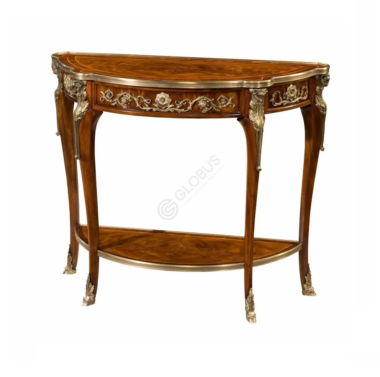 Он идеально впишется в пространство гостиной, привнося атмосферу дворцовой элегантности. Столик может служить подставкой для лампы, вазы с цветами или любимых книг, становясь притягательным акцентом у кресла или дивана. Его присутствие ненавязчиво заявляет о безупречном вкусе владельца и любви к деталям.
