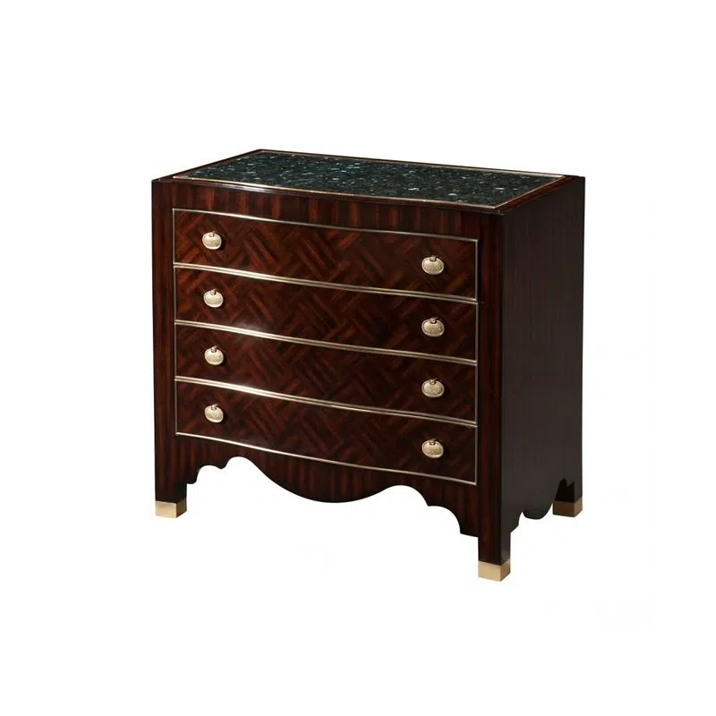 Изготовленное из натурального дерева и качественного шпона, это изделие демонстрирует глубокий, насыщенный оттенок с выразительной текстурой древесины. Отделка патиной придает поверхности благородный налет времени, подчеркивая классический характер и безупречное исполнение.