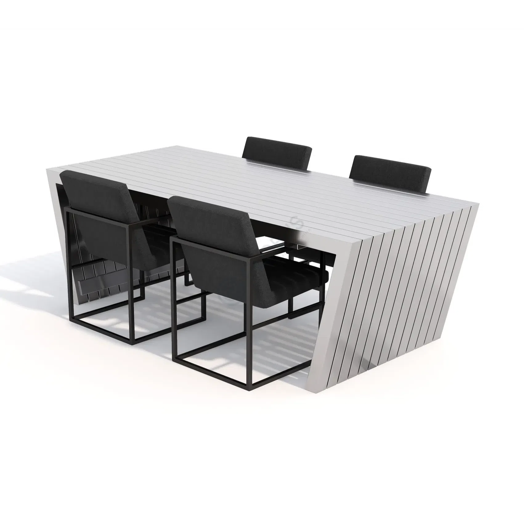 Представляем стильный уличный стол из алюминия, идеально подходящий для современного внешнего пространства. Конструкция отличается строгими линиями и прочностью, обеспечивая длительный срок эксплуатации. Легкий и устойчивый, этот предмет мебели гармонично впишется в любой двор или террасу, добавляя нотку элегантности и функциональности. Сочетание качества и современного дизайна делает его отличным выбором для тех, кто ценит комфорт и стиль на своей открытой территории.