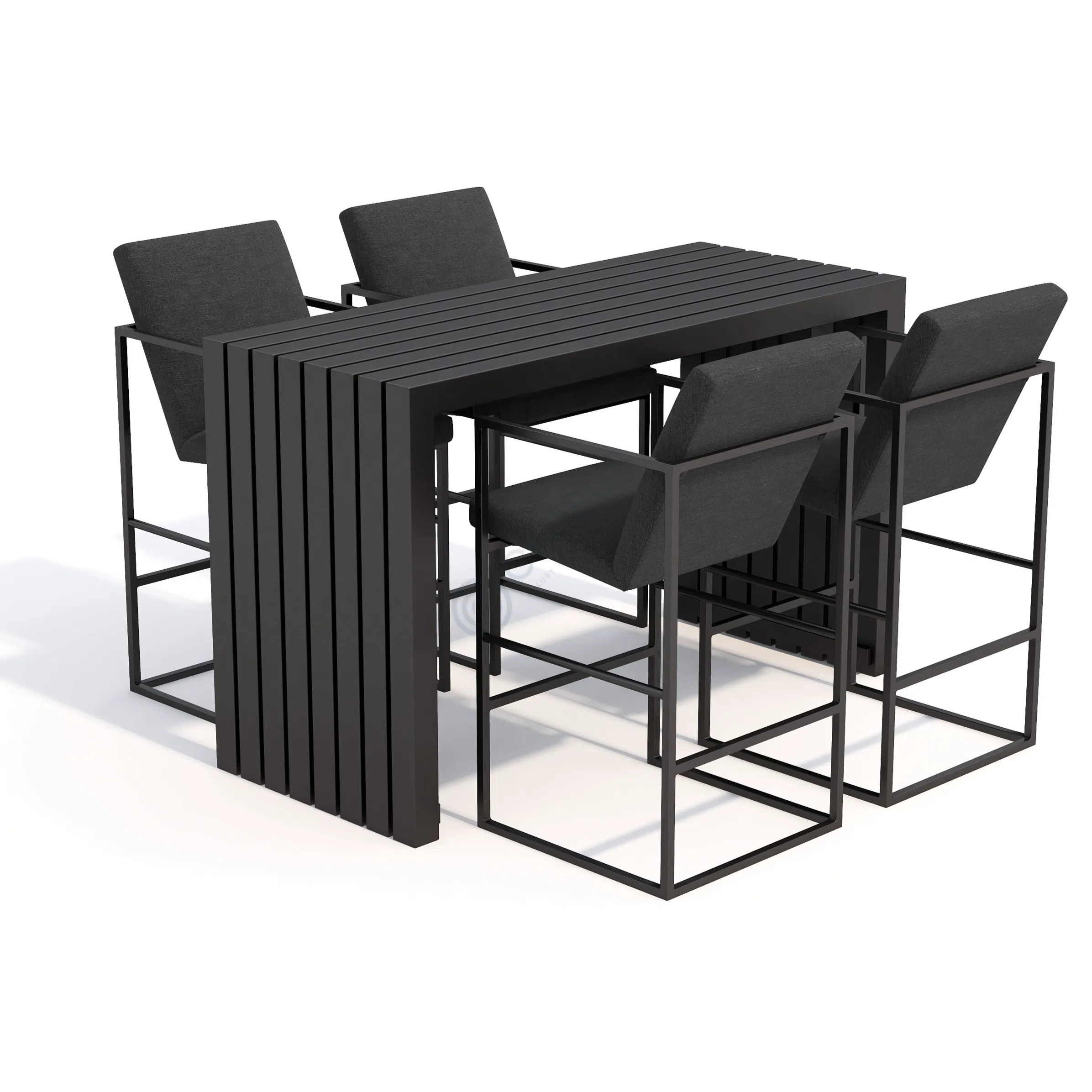 Стильный уличный барный стол из алюминия идеально подойдет для современных открытых пространств. Модный и минималистичный дизайн сочетается с прочностью материала, обеспечивая долговечность и устойчивость к погодным условиям. Геометрические формы в конструкции добавляют изысканности и неповторимую элегантность. Этот стол станет центральным элементом любой террасы или патио, предлагая удобство и комфорт для приятного времяпрепровождения на свежем воздухе.