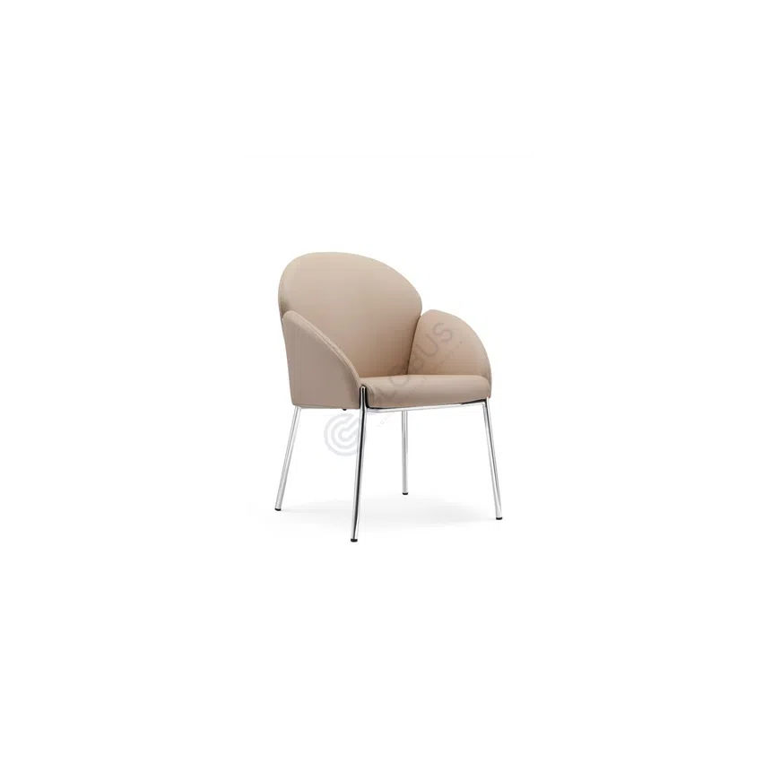 Обивка сиденья и спинки выполнена из премиальной натуральной кожи, чья мягкость и фактура подчеркивают высокий статус изделия. Легкость и прочность конструкции обеспечивает полированный алюминий основания, который также придает облику динамичность и завершенность.