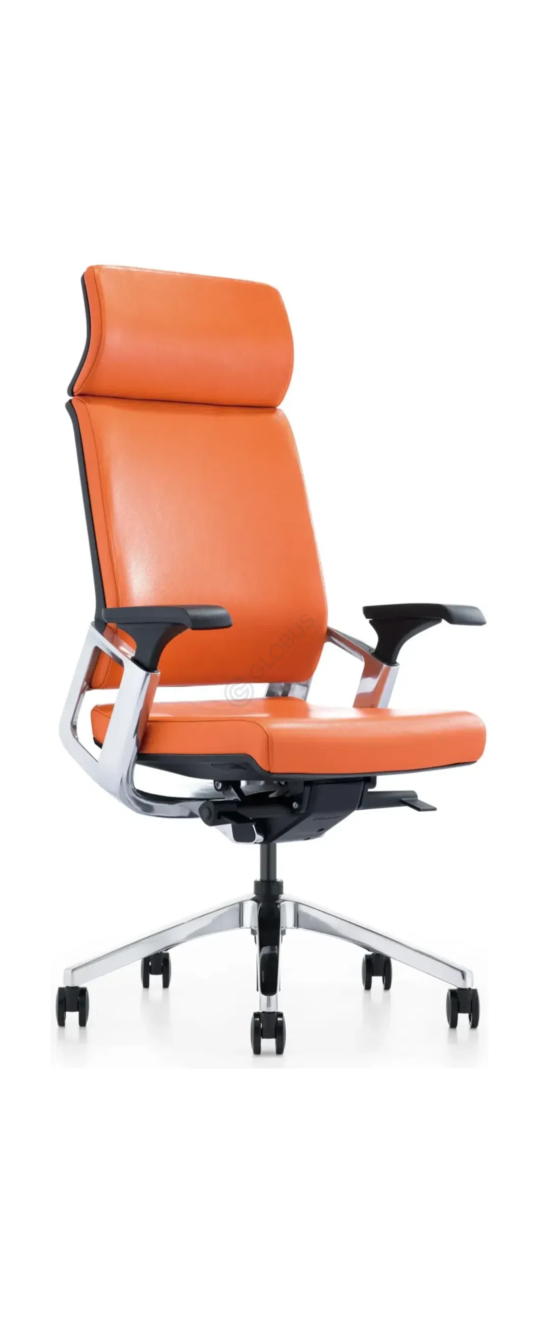 Особое внимание уделено подбору материалов, формирующих его исключительный вид и тактильные ощущения. Мягкая натуральная кожа обтягивает сиденье и спинку, обеспечивая непревзойденный комфорт при длительной работе и придавая изделию роскошный вид. Прочное основание, выполненное из полированного алюминия, гарантирует надежность и устойчивость, а также добавляет конструкции легкости и визуальной привлекательности. Функциональные элементы из полиуретанового пластика дополняют общую композицию, обеспечивая плавность регулировок.
