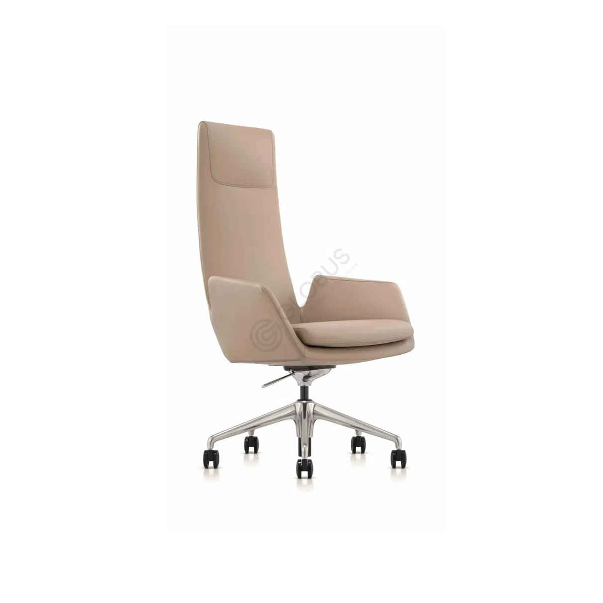 Элегантное основание выполнено из полированного алюминия, что гарантирует не только устойчивость, но и легкость перемещения благодаря встроенным колесикам. Продуманные линии подлокотников, интегрированные в общую форму, завершают образ, создавая гармоничный и эргономичный предмет мебели для продуктивной работы.