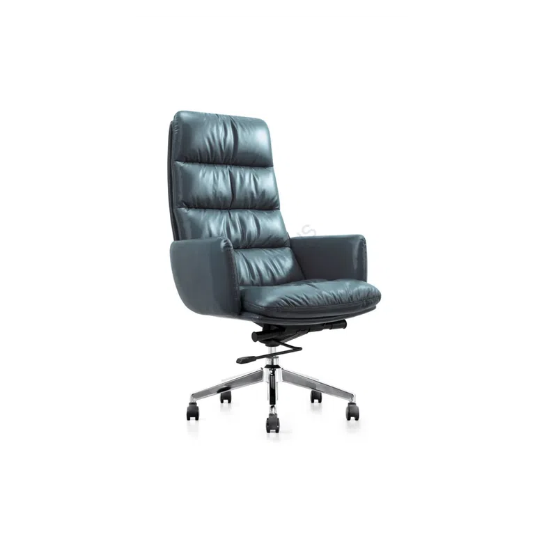 Элегантность дизайна подчеркивает изогнутое металлическое основание с блестящей поверхностью. Прочная конструкция обеспечивает устойчивость, а отсутствие лишних деталей создает ощущение легкости и минимализма. Этот стул — не просто функциональный элемент, а акцент, говорящий о статусе и вкусе владельца. Он спроектирован так, чтобы не только выглядеть презентабельно, но и поддерживать правильную осанку, способствуя продуктивной деятельности. Такой элемент обстановки добавит помещению завершенности и изысканности.