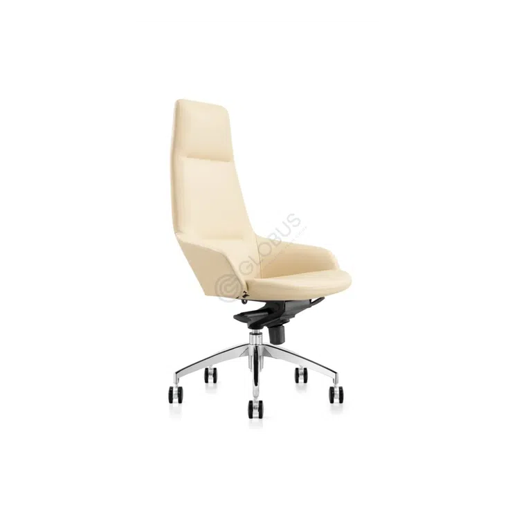 Эргономичная форма сиденья и высокая спинка обеспечивают комфортную посадку на протяжении долгого времени. Плавные изгибы подлокотников гармонично дополняют общий облик, предлагая дополнительное удобство. Центральная опора оснащена поворотным механизмом, позволяющим легко менять положение и ориентироваться в пространстве.