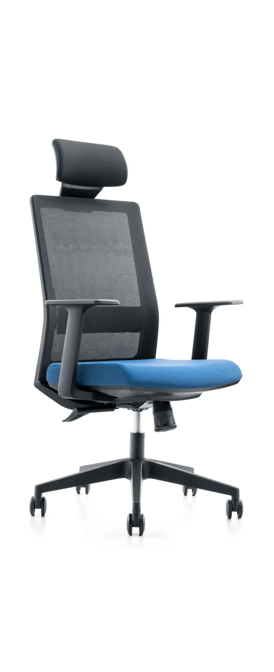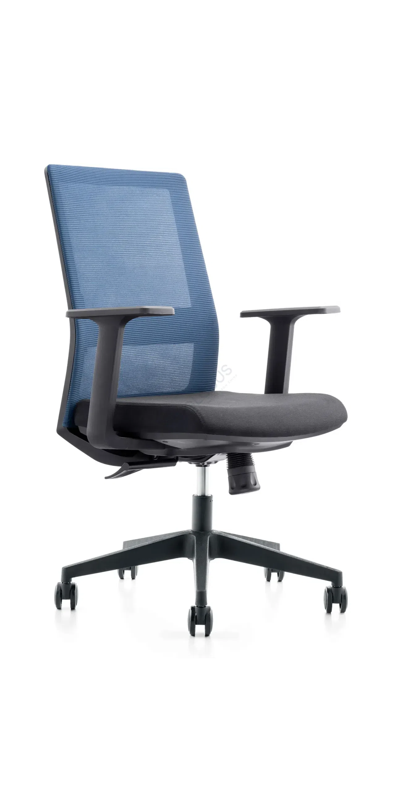 Основа комфорта заложена в подборе материалов. Спинка выполнена из дышащей ткани меш, которая гарантирует адаптивную поддержку и оптимальный воздухообмен. Сиденье обито плотным текстилем, предлагая приятные тактильные ощущения и комфорт на протяжении долгих часов работы.