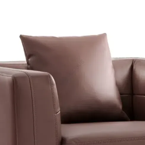 Основание дивана выполнено из натурального дерева и дополнено прочными стальными элементами, что гарантирует надежность и долговечность конструкции. Обивка из высококачественной экокожи на микрофибре придает изделию роскошный вид и приятные тактильные ощущения, сочетая эстетику натуральной кожи с практичностью современного материала.
