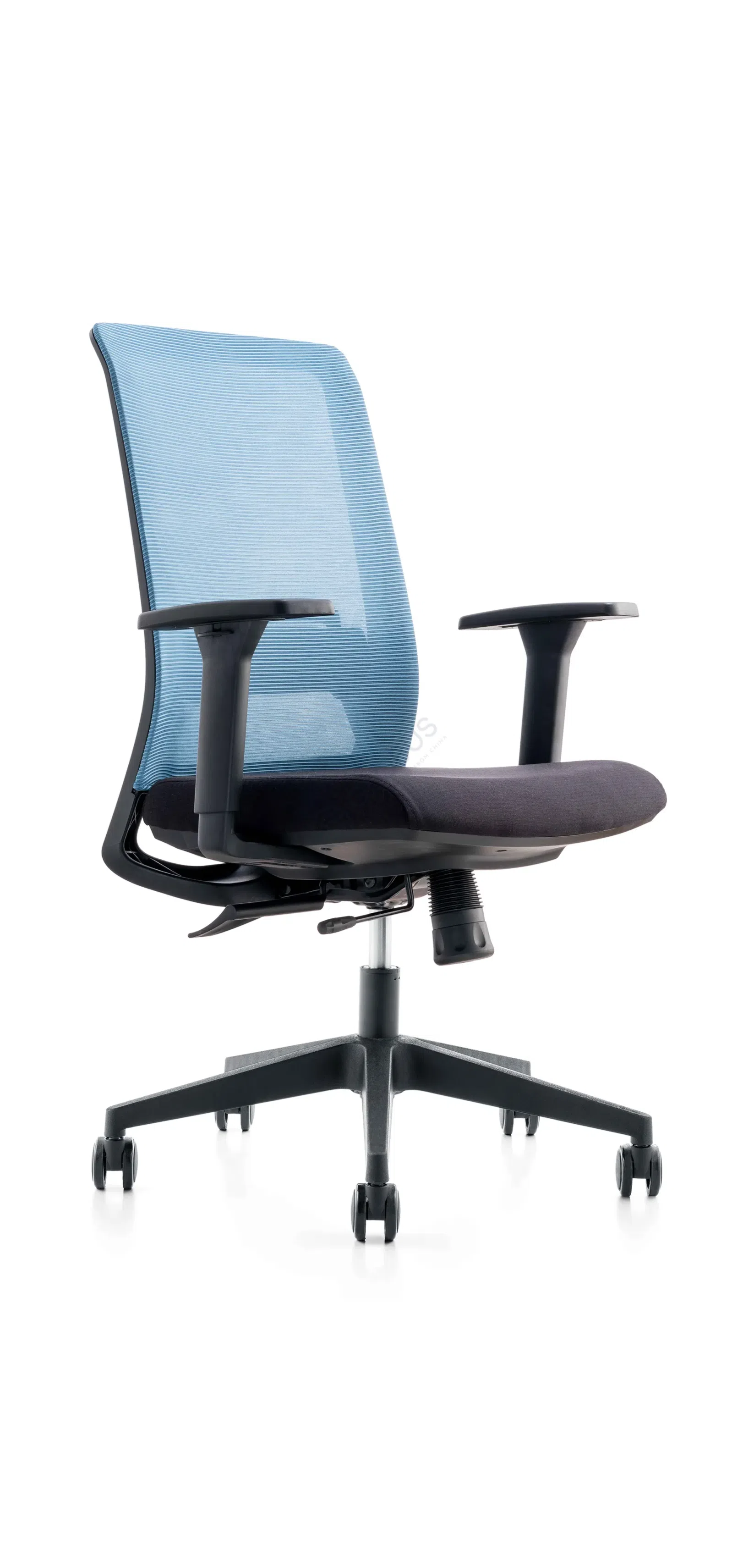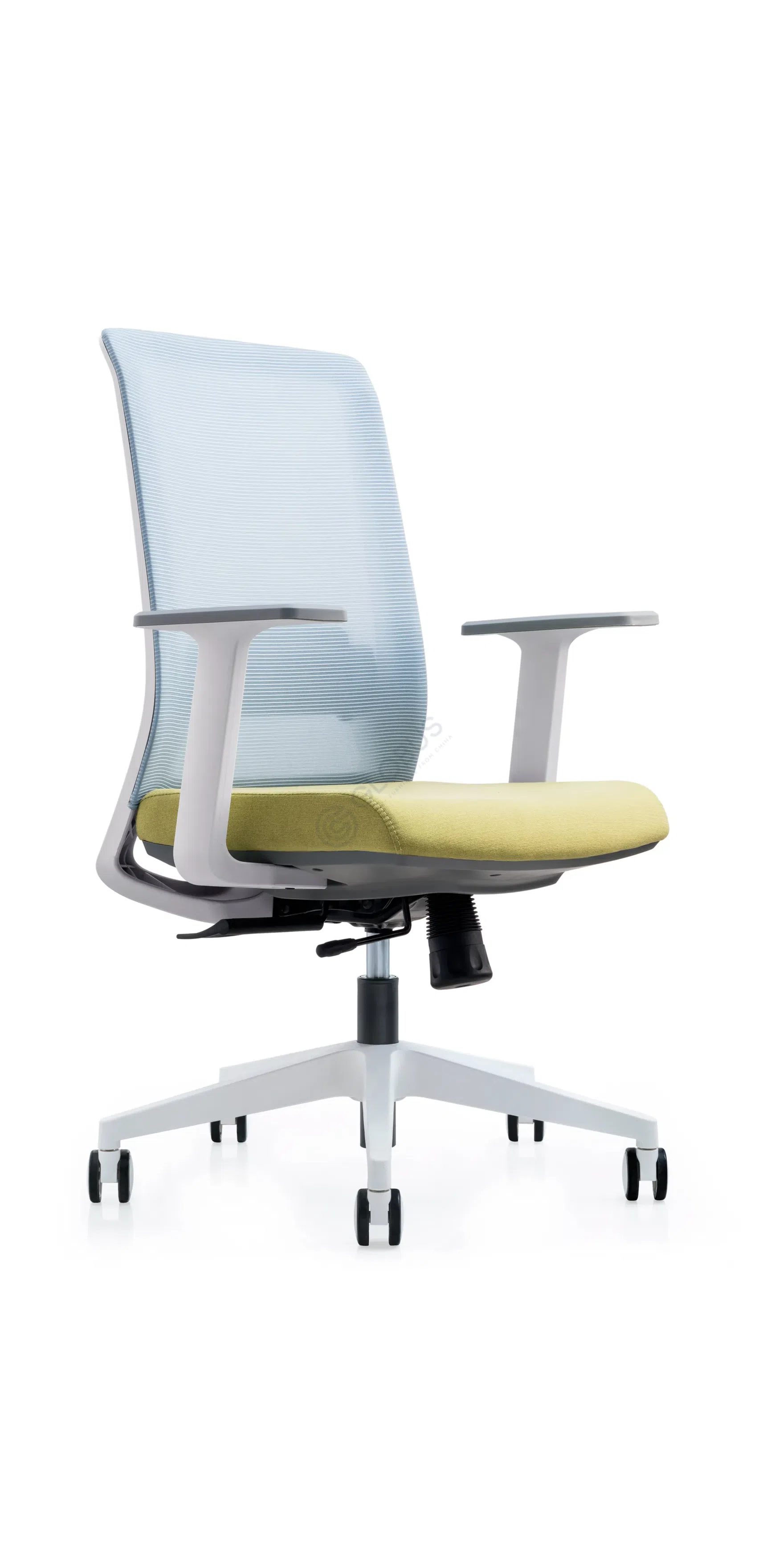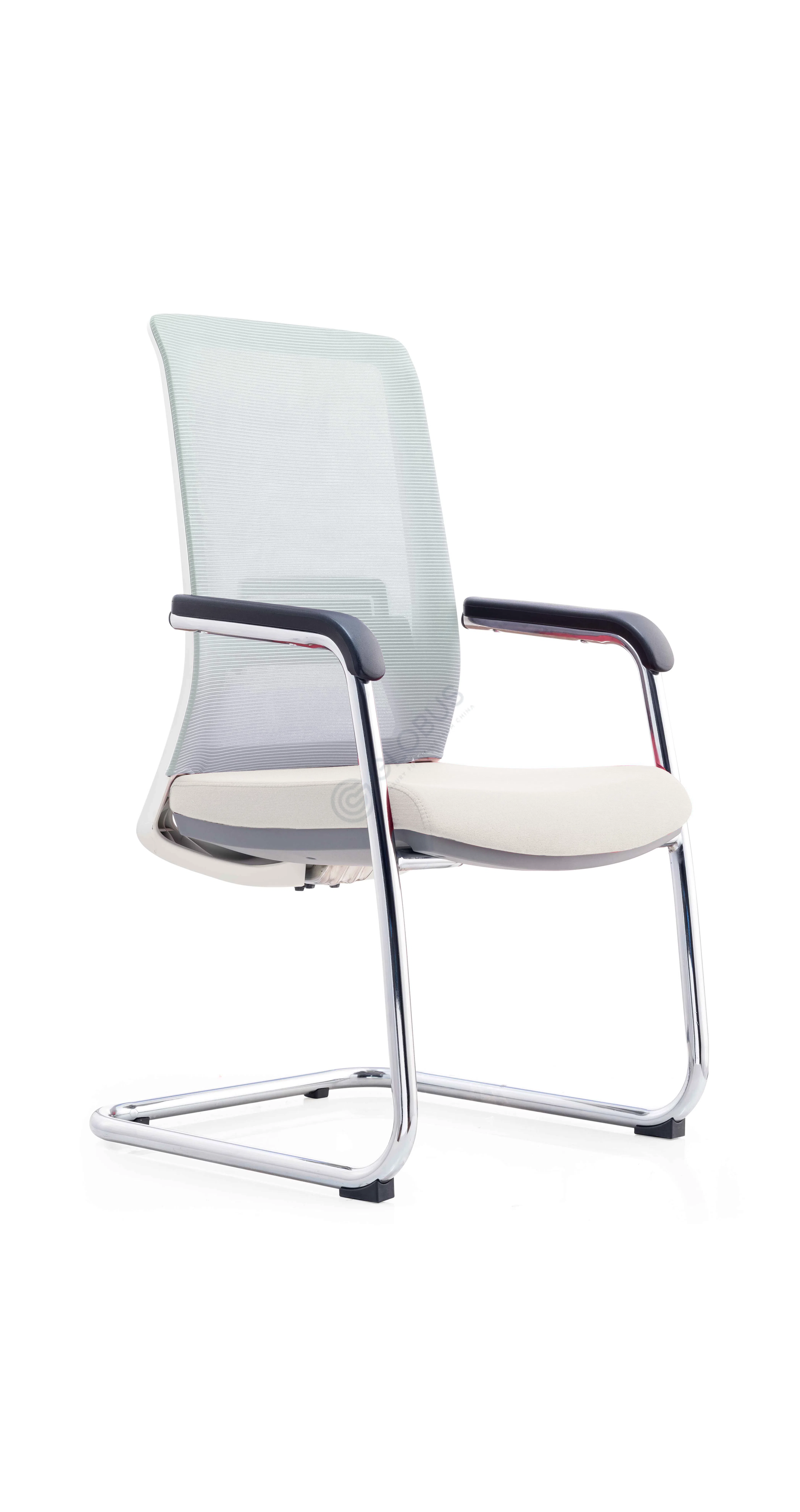 Основу изделия составляет прочное металлическое основание с элегантной консольной формой, придающее конструкции устойчивость и визуальную легкость. Спинка, выполненная из дышащей ткани меш, адаптируется к контурам тела, обеспечивая комфорт и вентиляцию в течение рабочего дня. Мягкое сиденье обтянуто качественным текстилем, предлагая приятные тактильные ощущения.