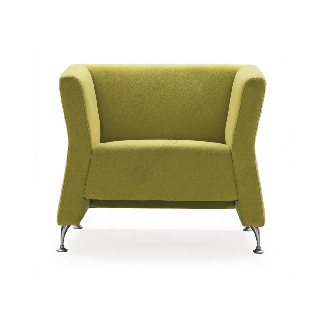 Плавный изгиб подлокотников придает модели уникальный силуэт, приглашая к отдыху. Основа конструкции выполнена из натурального дерева, гарантируя надежность и долгие годы службы. Тонкие ножки из полированной нержавеющей стали завершают образ, добавляя изящества и подчеркивая актуальную эстетику.