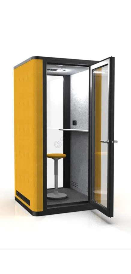 Эта кабина становится не просто мебелью, но настоящим оазисом тишины. Прозрачные элементы поддерживают ощущение связи с внешним миром, не создавая чувства замкнутости. Она предлагает совершенное место для проведения видеоконференций, глубокого анализа или просто для моментов, когда требуется полная тишина для завершения важной задачи. Это продуманное решение для тех, кто ценит комфорт, продуктивность и утонченный дизайн в рабочей среде.