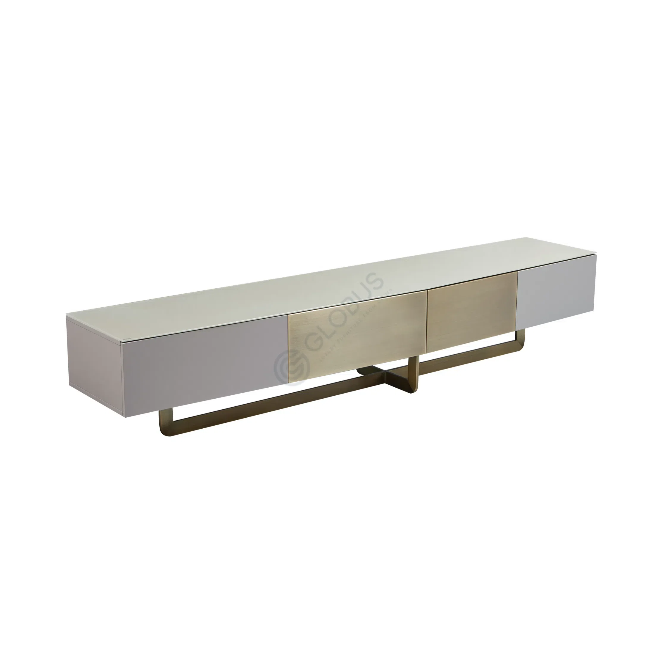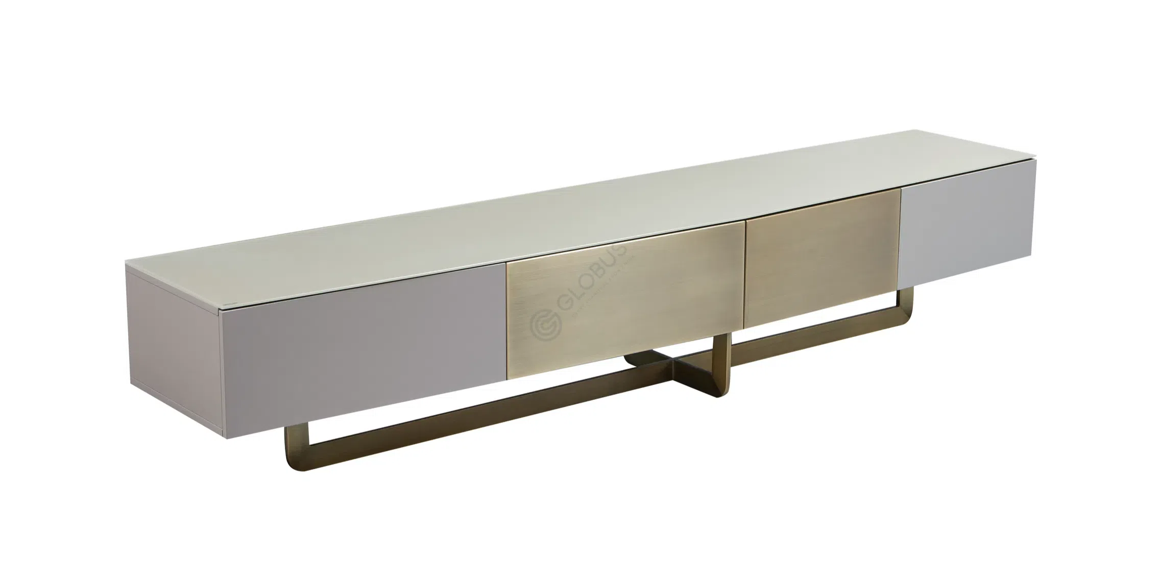 Конструкция изделия отличается превосходным исполнением, где матовые боковые панели из прочной фанеры изящно контрастируют с центральными дверцами, выполненными из благородной бронзы с уникальной текстурой. Это сочетание придает мебели выразительность и подчеркивает внимание к деталям. Опорная система представляет собой утонченный каркас из нержавеющей стали с бронзовой отделкой, центральная крестообразная вставка которого придает силуэту легкость и визуально приподнимает верхнюю часть.