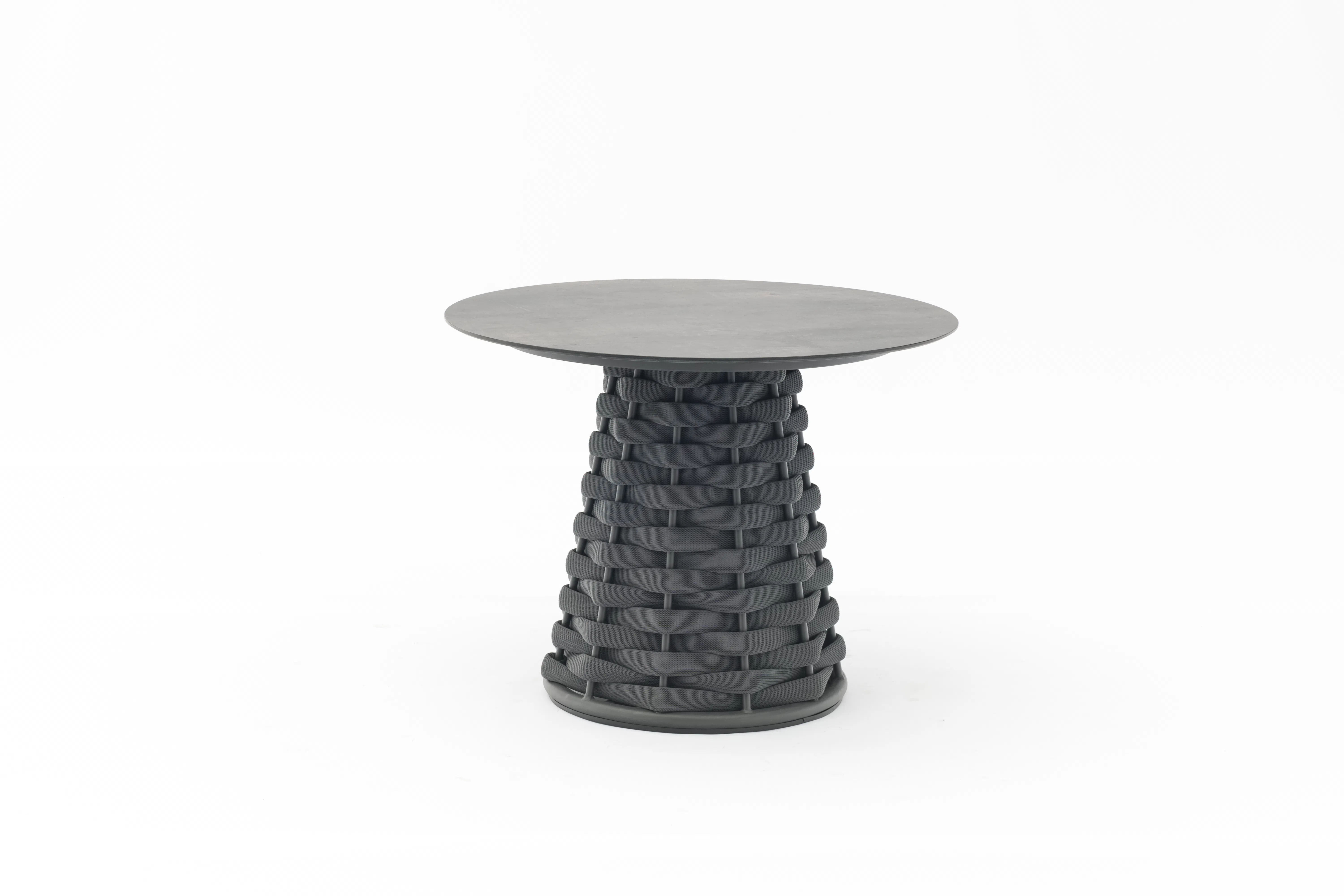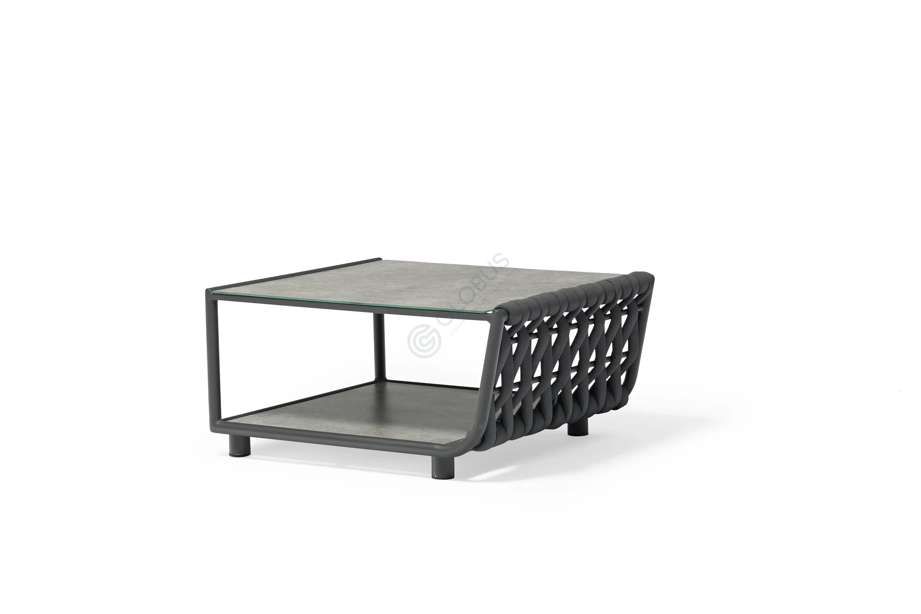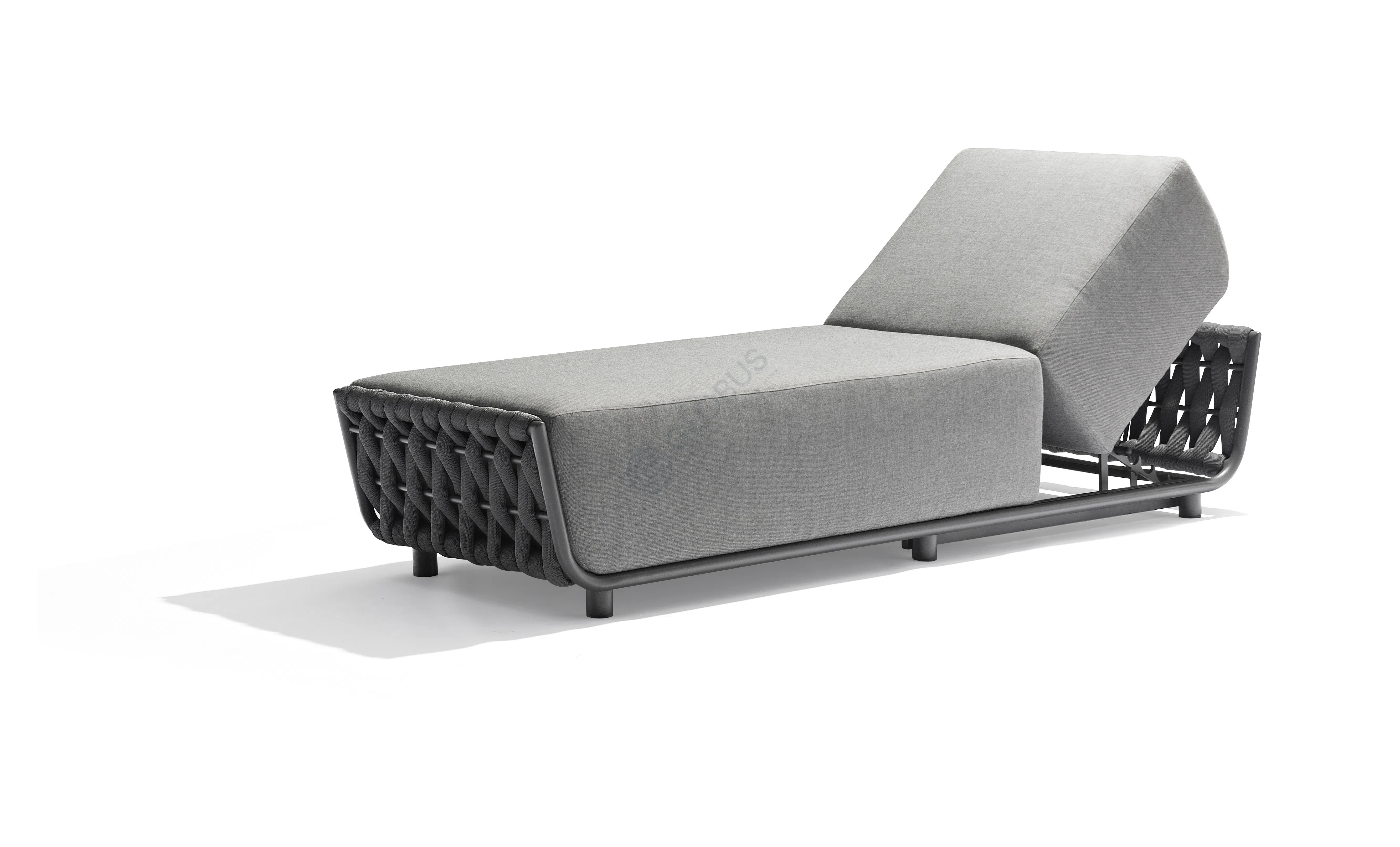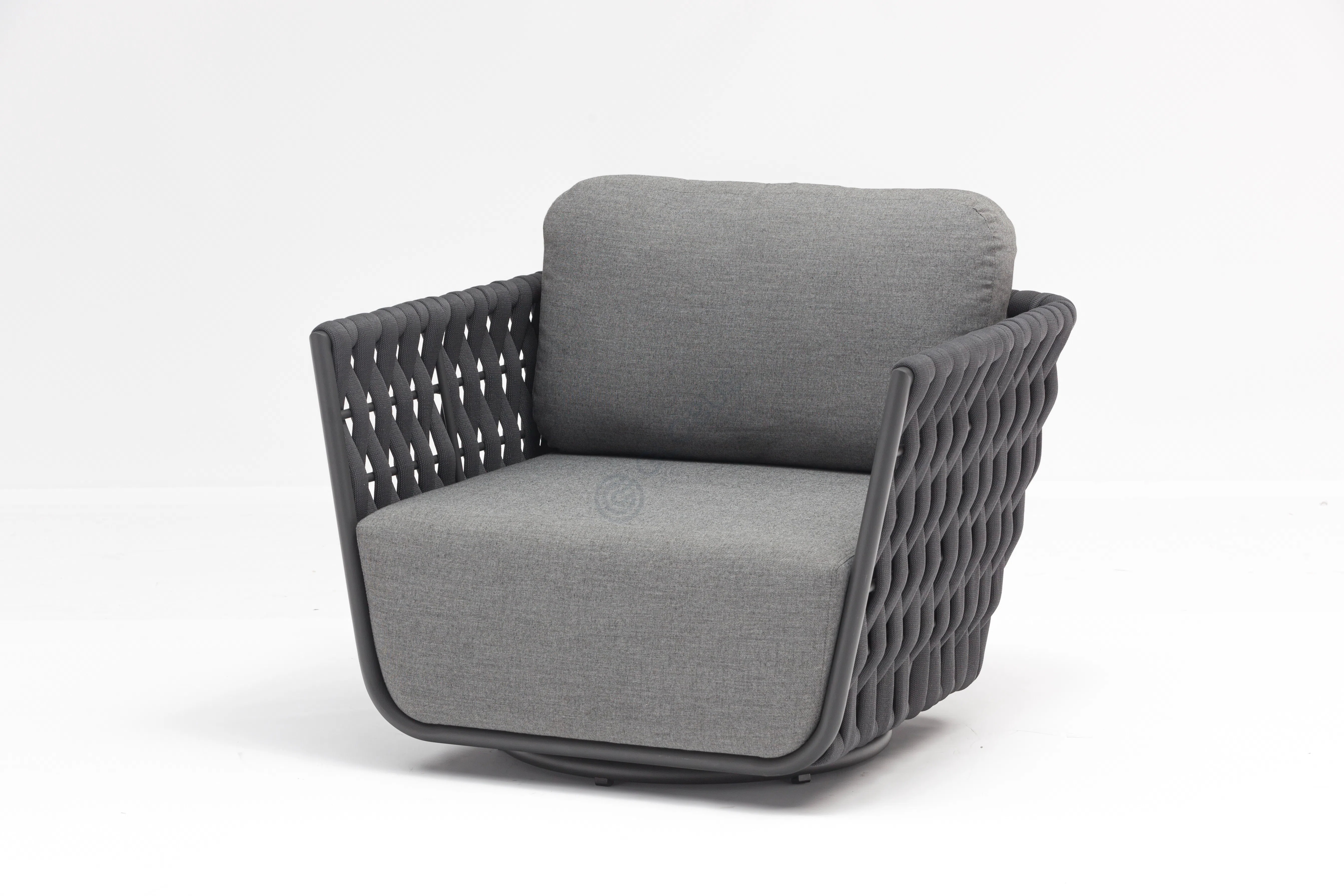 Основу конструкции составляет прочный алюминиевый каркас, обеспечивающий долговечность и стабильность. Боковые части и спинка выполнены с использованием оригинального плетения из веревки, что придает изделию особую выразительность и легкость. Дополняют образ мягкие текстильные подушки, предлагающие непревзойденный уют.