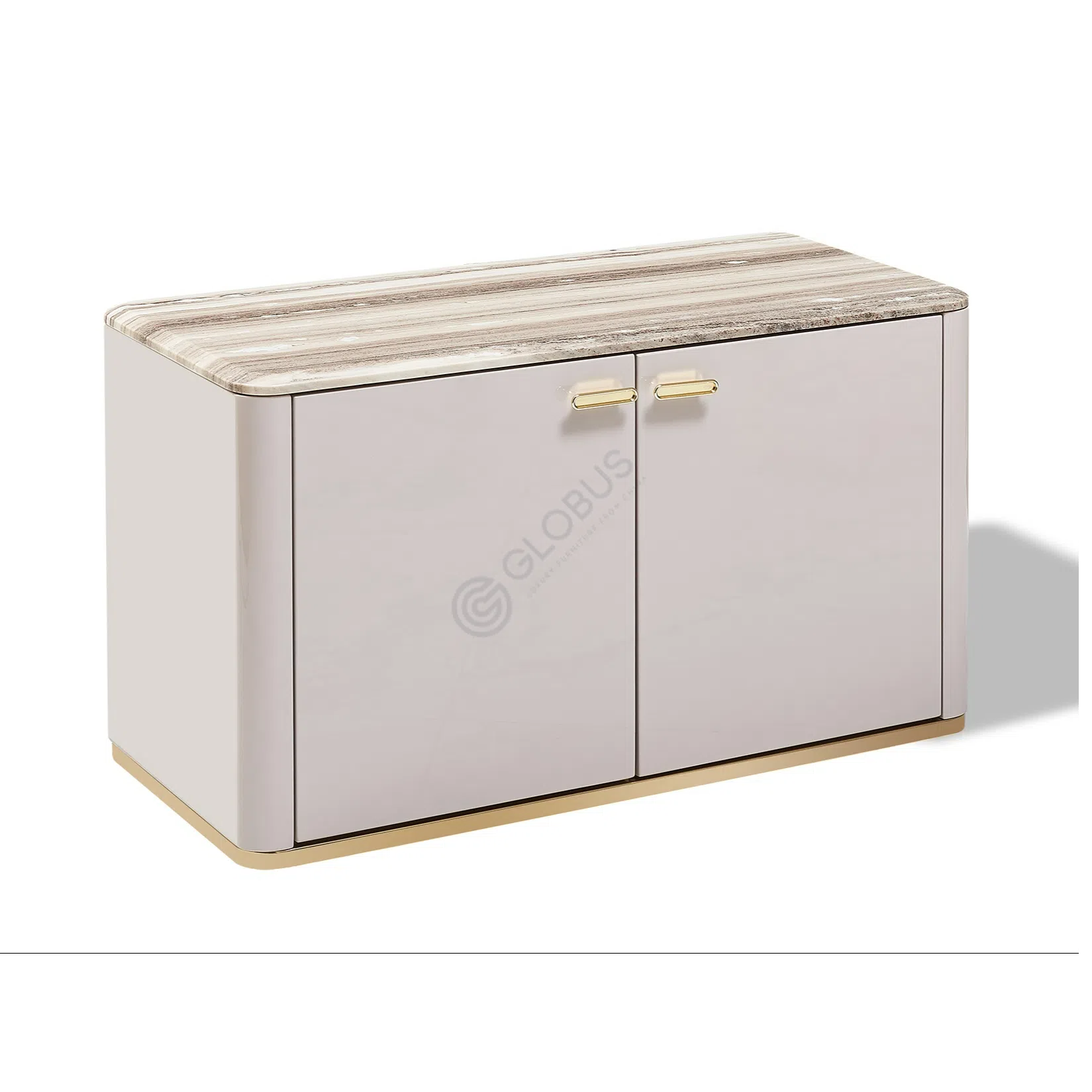 Этот предмет мебели воплощает изысканность современного дизайна и мастерство исполнения. Его удлиненная столешница из натурального мрамора демонстрирует уникальную природную фактуру, становясь центральным элементом композиции. Плавные линии и скругленные углы столешницы придают облику особую мягкость и элегантность.