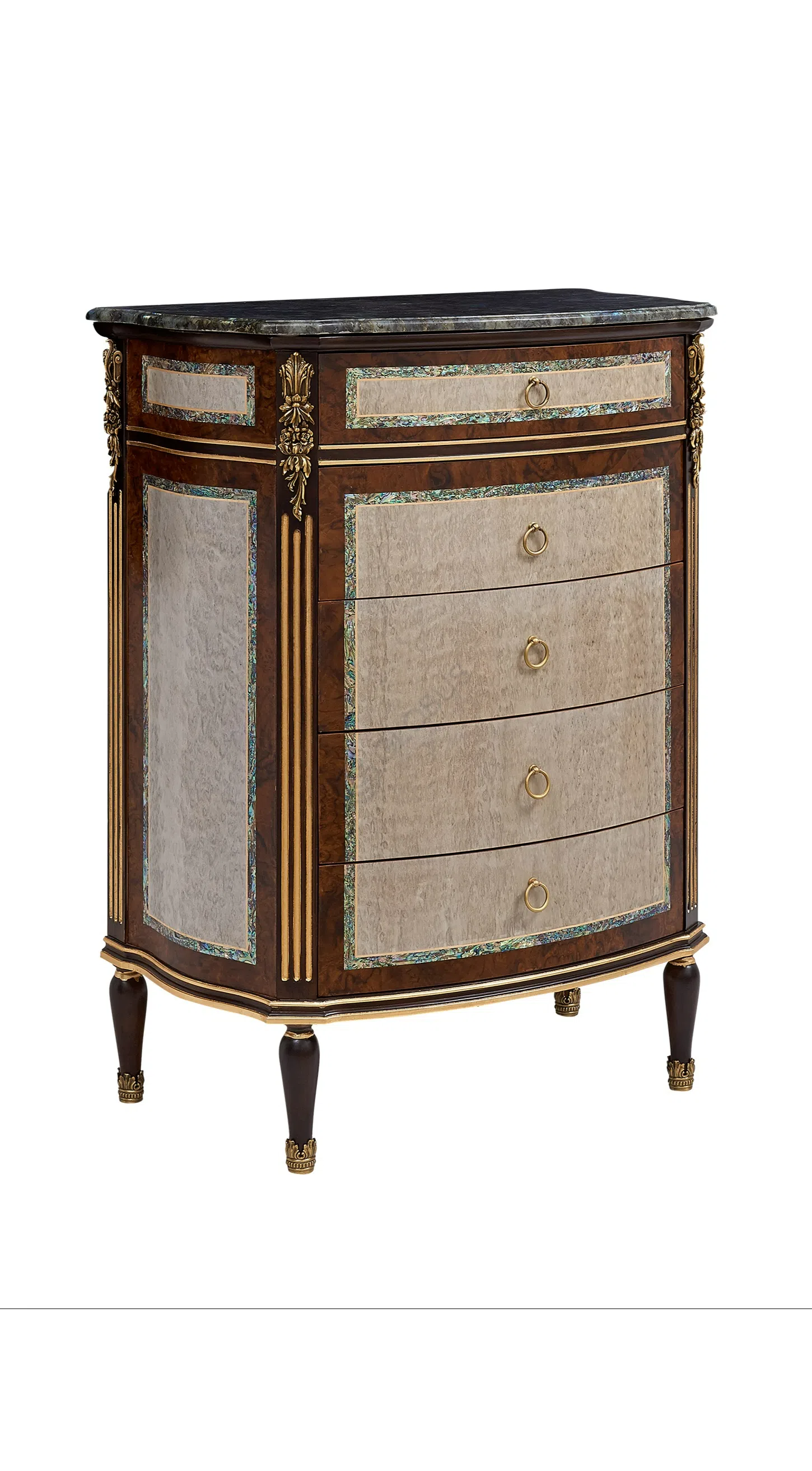 Эта тумба станет центральным элементом интерьера, идеально вписываясь как в торжественную гостиную, так и в уютную спальню, придавая пространству атмосферу утонченной роскоши и комфорта.
