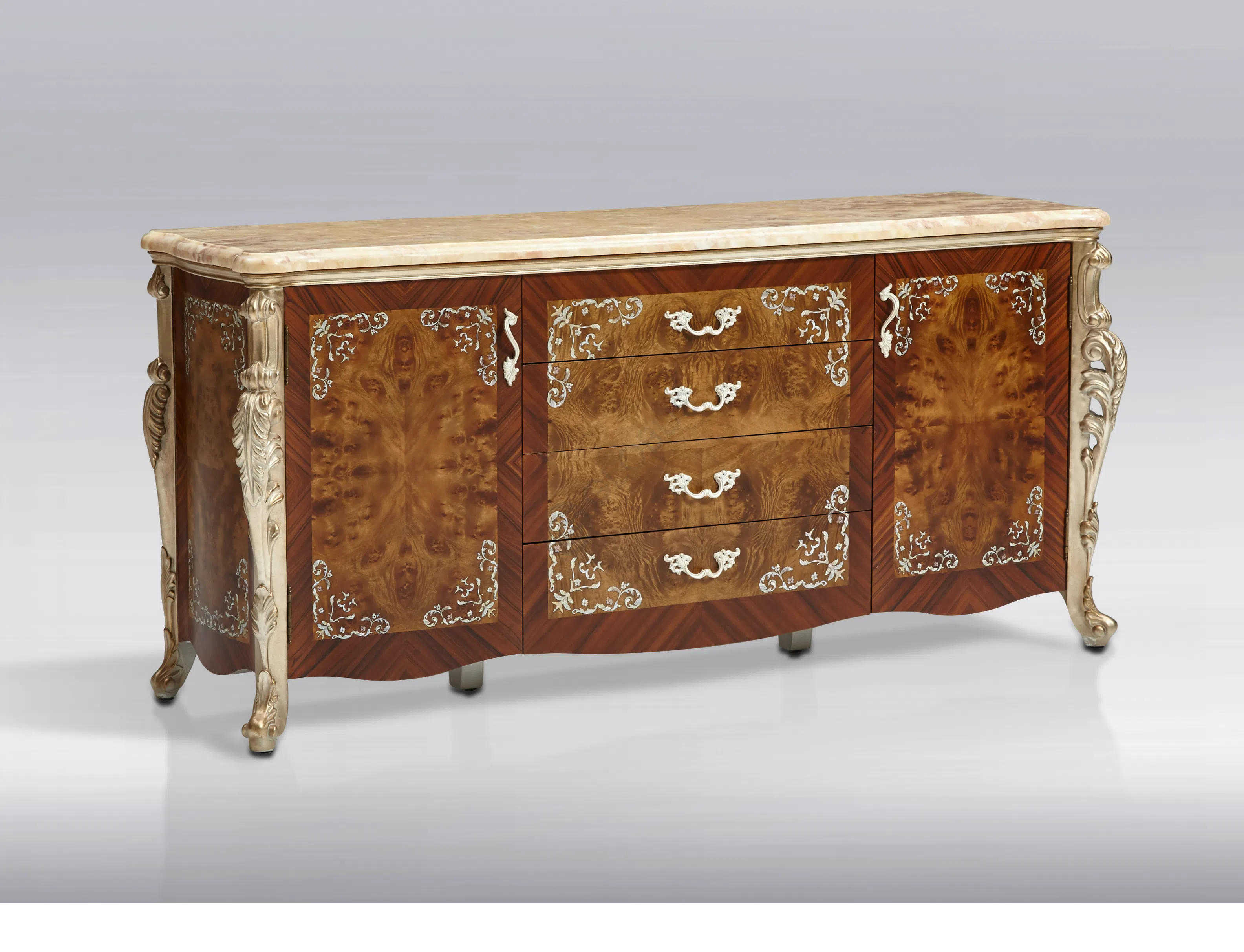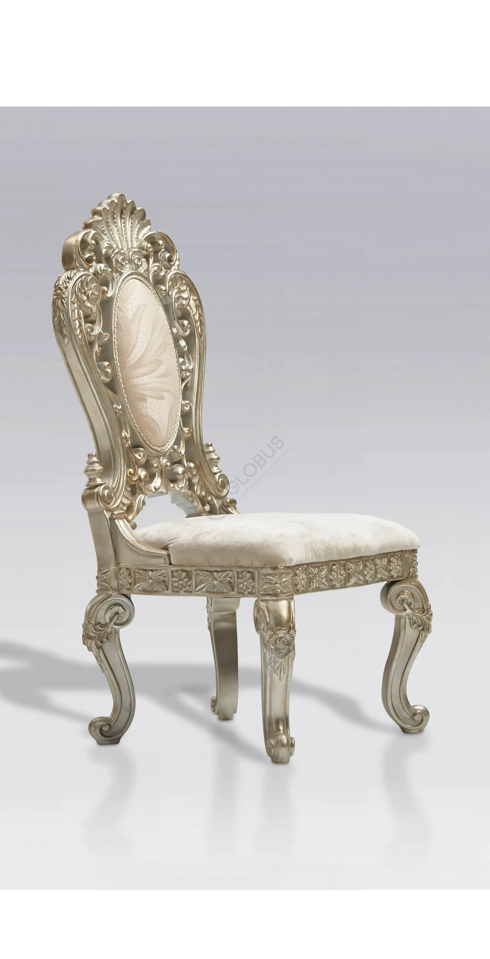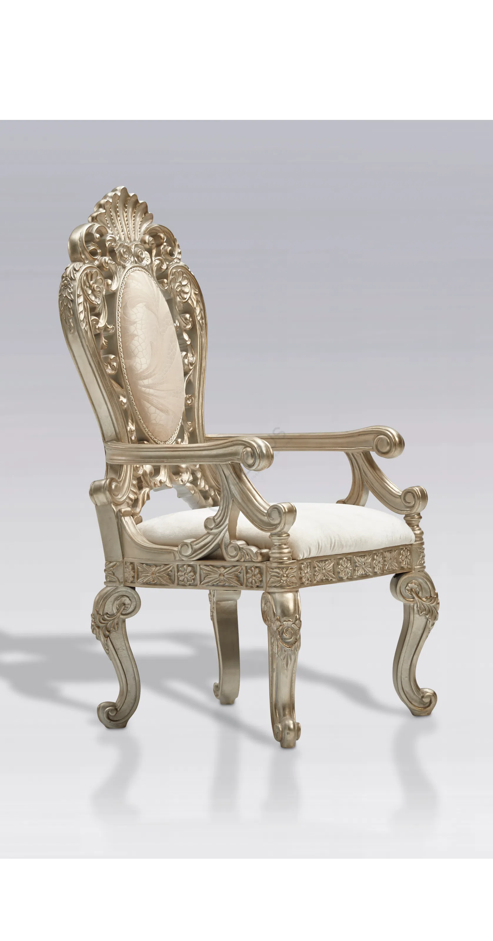 Это изысканное кресло воплощает элегантность европейской классики, представляя собой не просто функциональный предмет, а настоящее произведение мебельного искусства. Каждая линия, каждый элемент отделки говорит о высоком мастерстве и безупречном вкусе, привнося в пространство атмосферу утонченной роскоши.