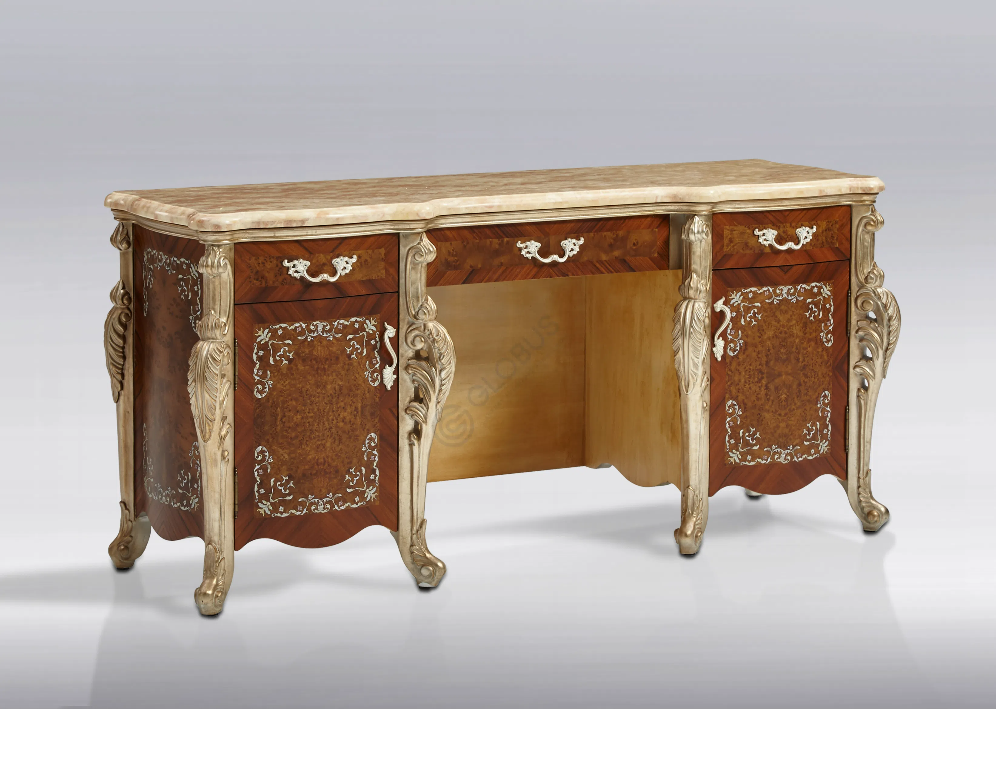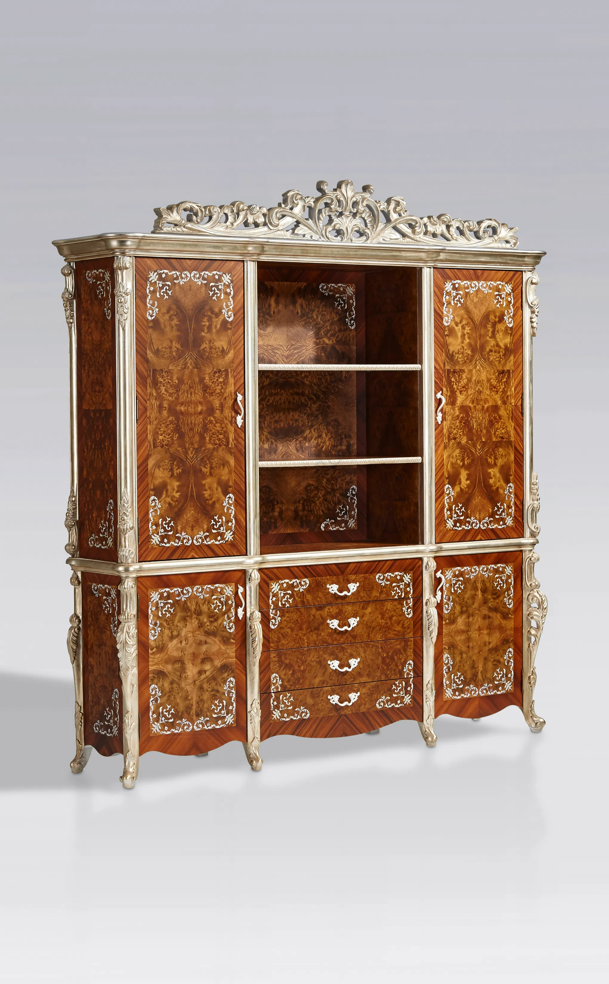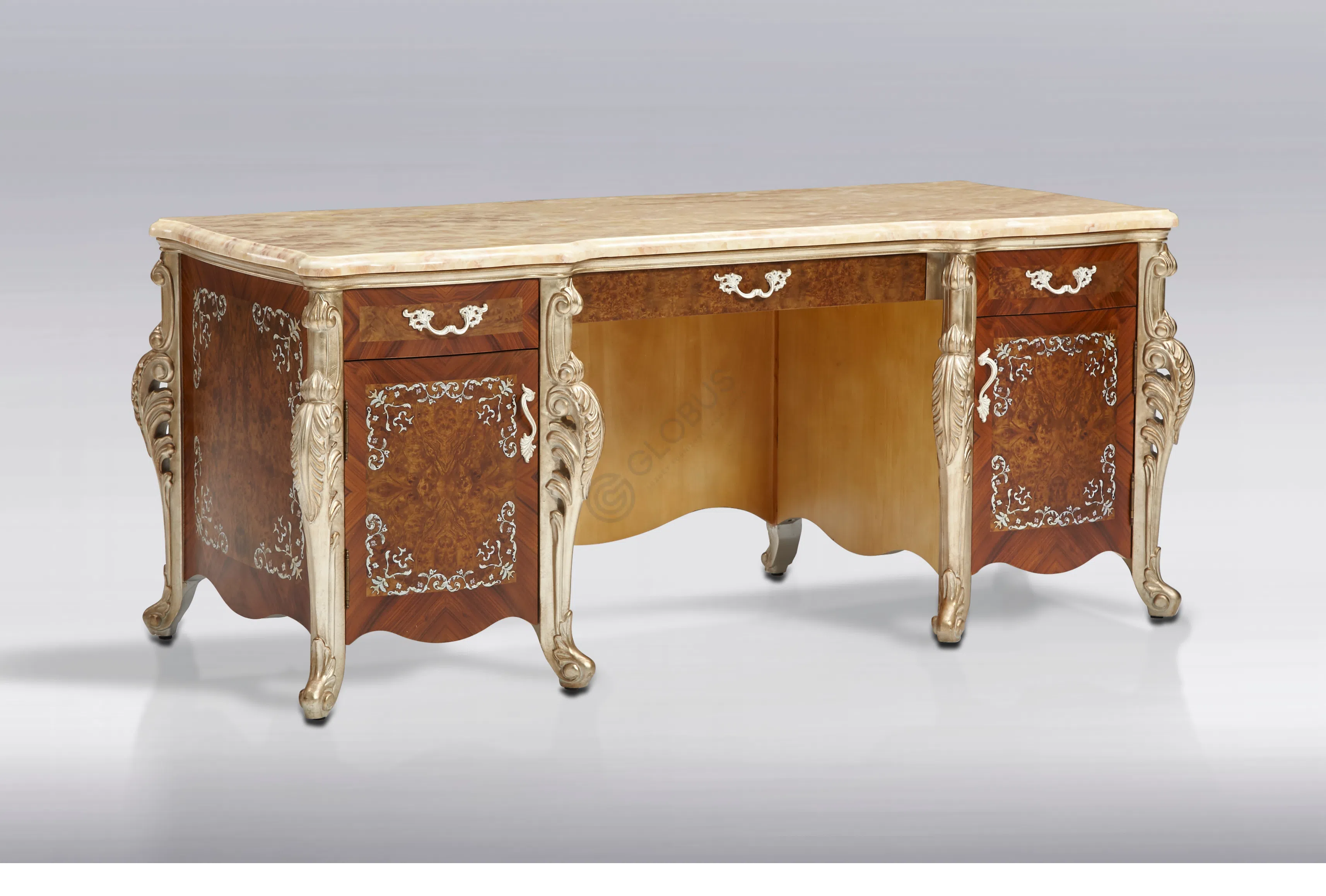 Это изысканное кресло воплощает элегантность европейской классики, представляя собой не просто функциональный предмет, а настоящее произведение мебельного искусства. Каждая линия, каждый элемент отделки говорит о высоком мастерстве и безупречном вкусе, привнося в пространство атмосферу утонченной роскоши.