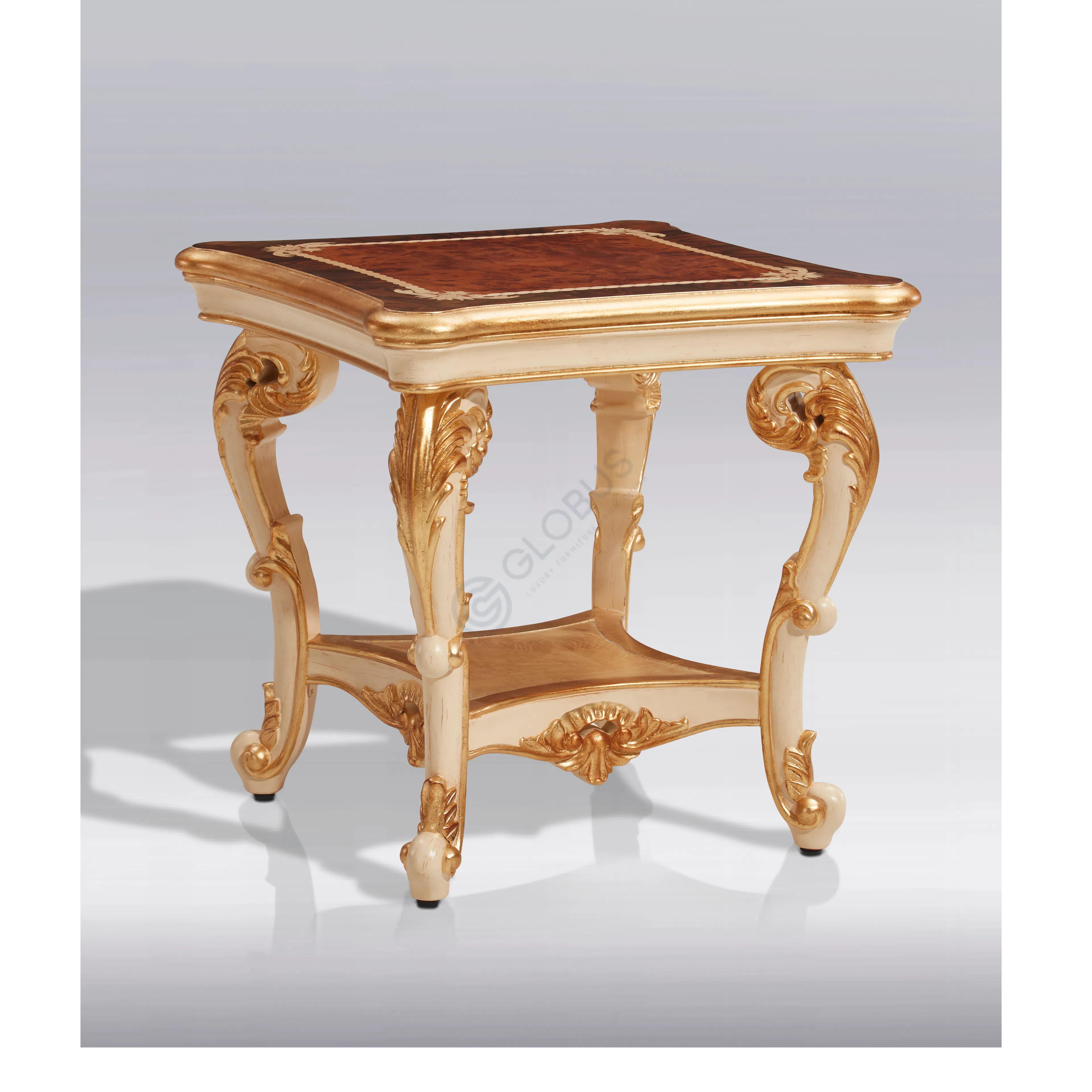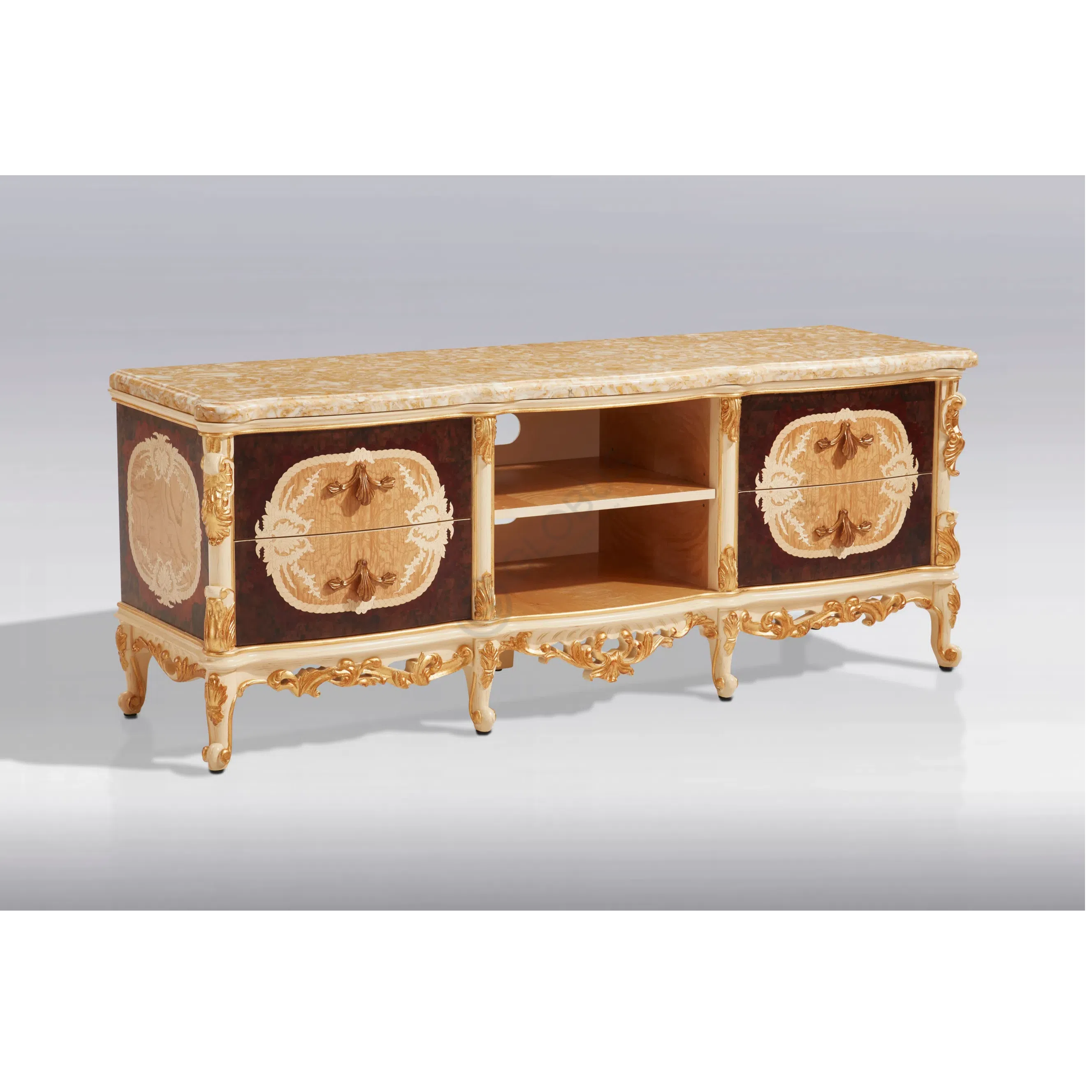 Основа конструкции выполнена из натурального дерева, что придает изделию прочность и долговечность. Использование шпона ценных пород дерева подчеркивает благородство линий и форм. Столешница из натурального мрамора добавляет роскоши и практичности, обеспечивая долговечную и красивую поверхность для использования. Отделка патиной усиливает винтажный эффект, придавая мебели особый шарм и ощущение времени. Фанера служит надежным каркасом, дополняя конструкцию.