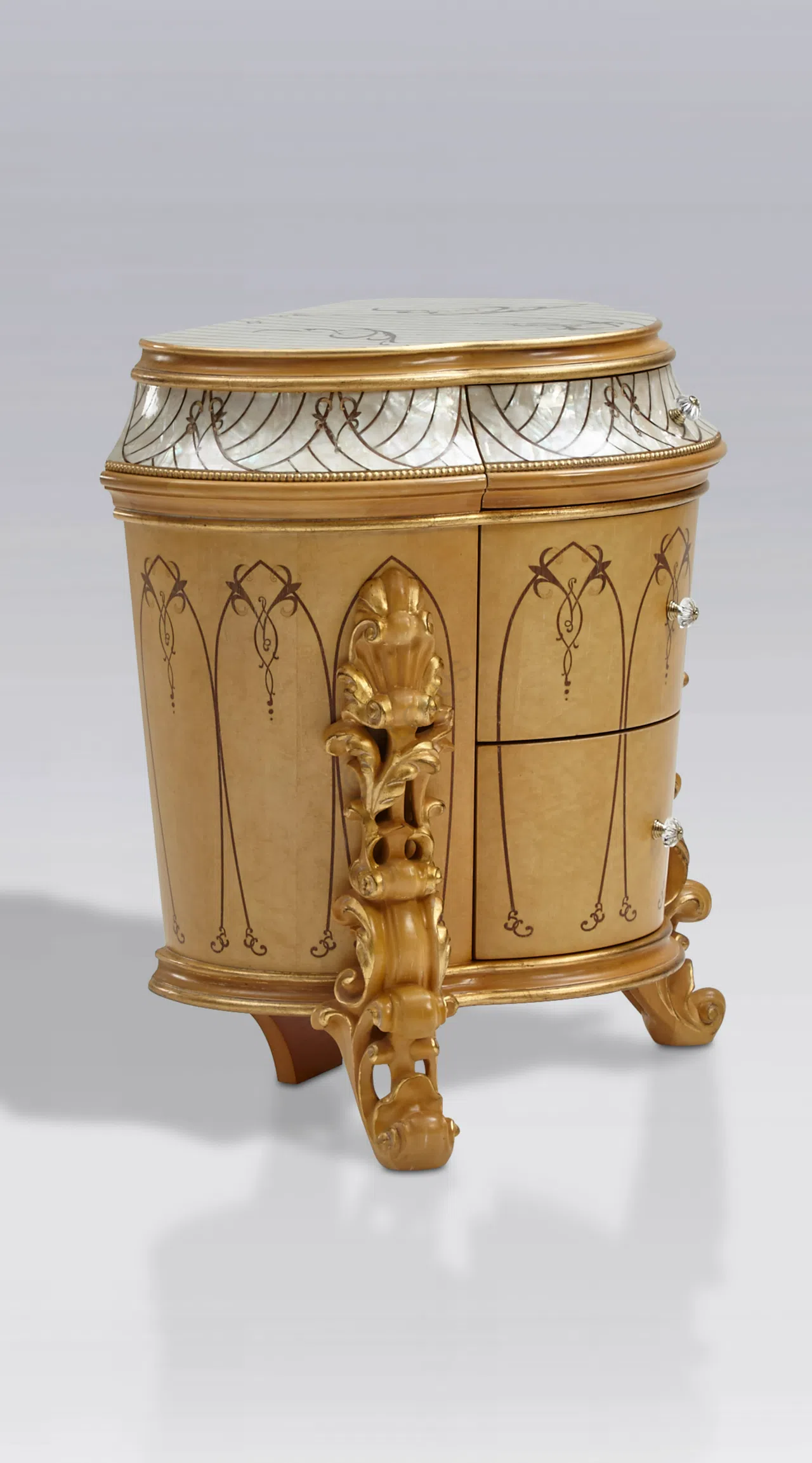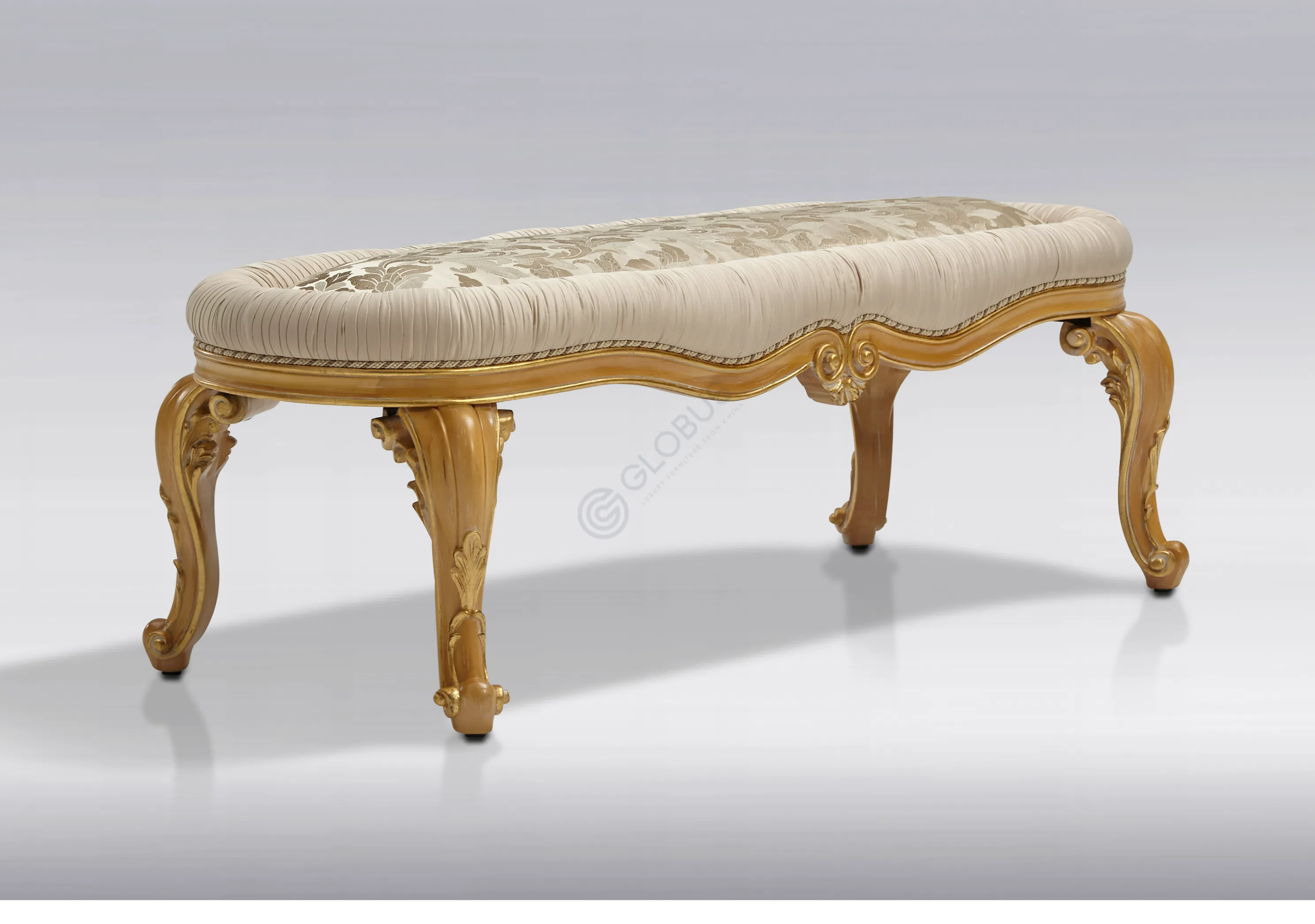 Каркас изделия создан из натурального дерева, чья благородная текстура подчеркнута специальным покрытием под патину. Этот прием придает поверхности легкий налет старины и глубину цвета, усиливая ощущение антикварности и высокого качества. Плавные изгибы ножек и спинки, а также декоративная резьба, отражают мастерство исполнения.