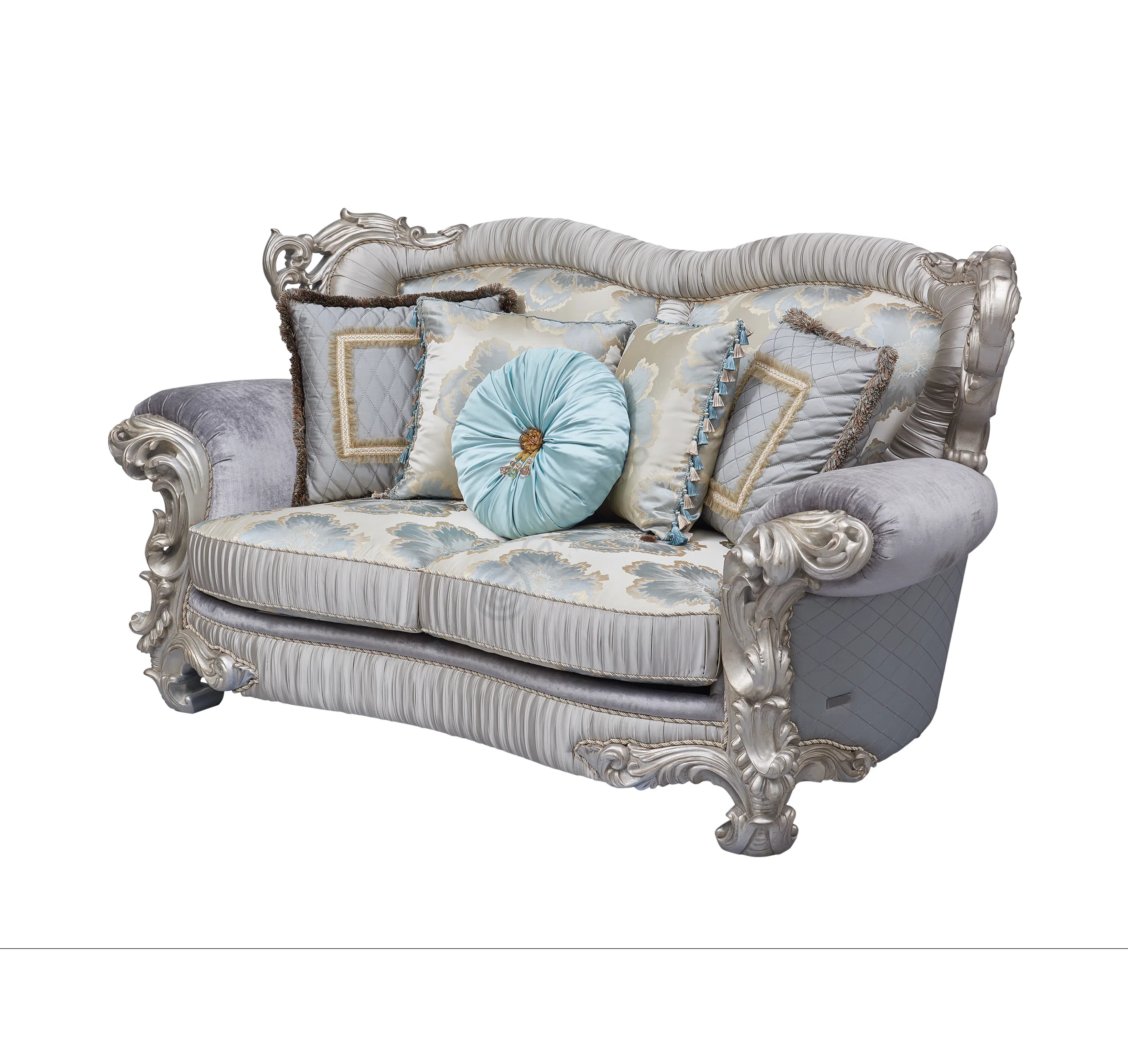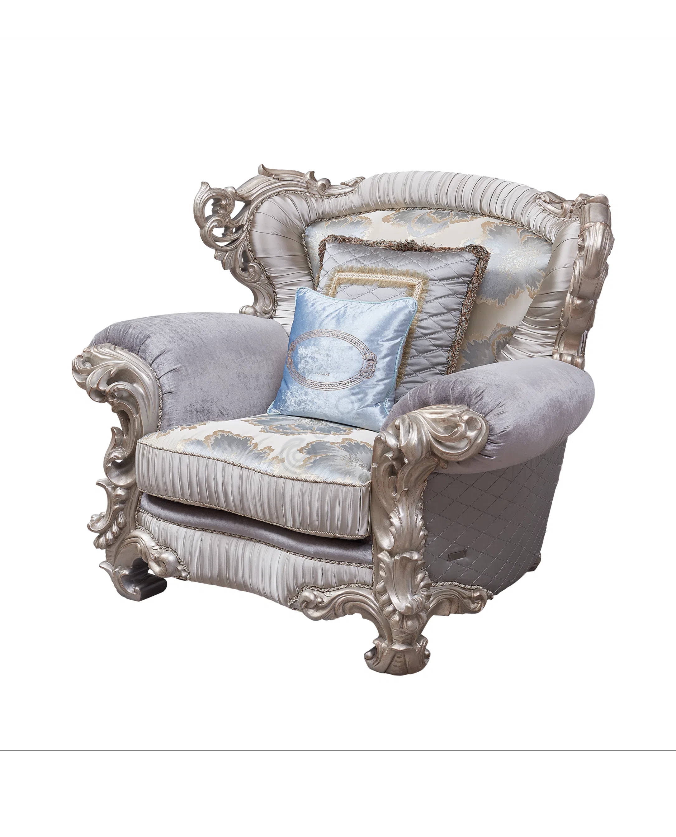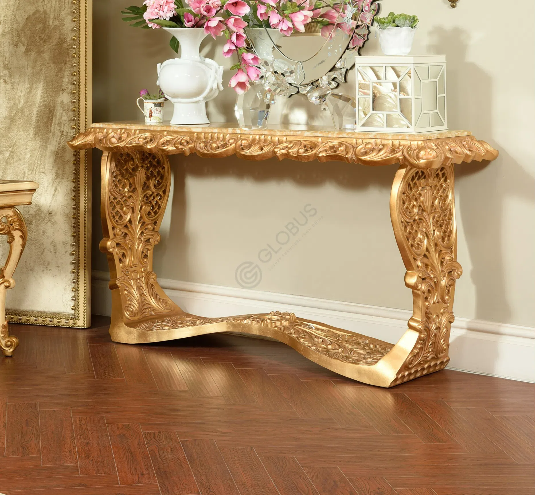 Представленная банкетка является воплощением утонченного вкуса и мастерства, созданного для интерьеров, где ценится подлинная красота и роскошь. Ее форма и декор отсылают к величественным эпохам европейской классики, внося в пространство нотки дворцового шарма и элегантности, характерные для стилей барокко и рококо.